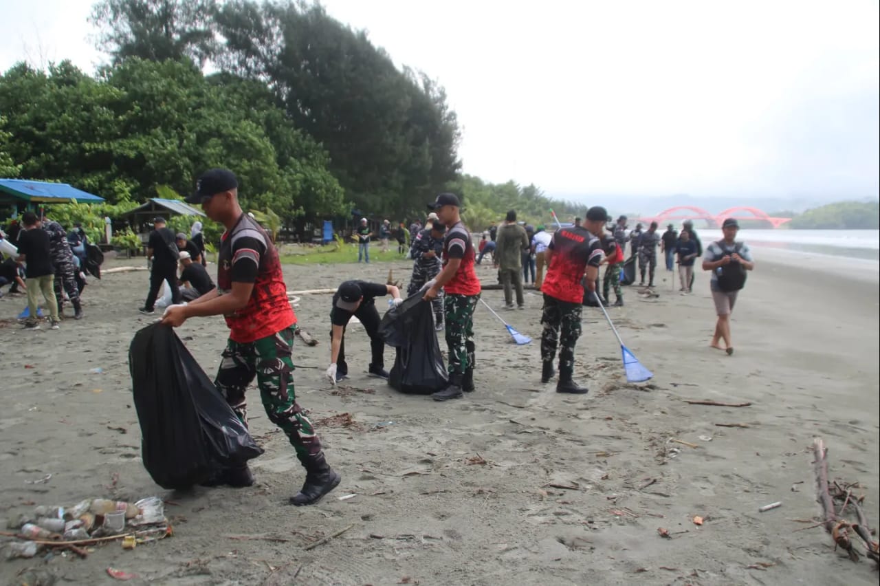 Aksi Wujud Lingkungan Bersih, Prajurit Yonmarhanlan X Ikuti Karya Bakti Bersih Pantai