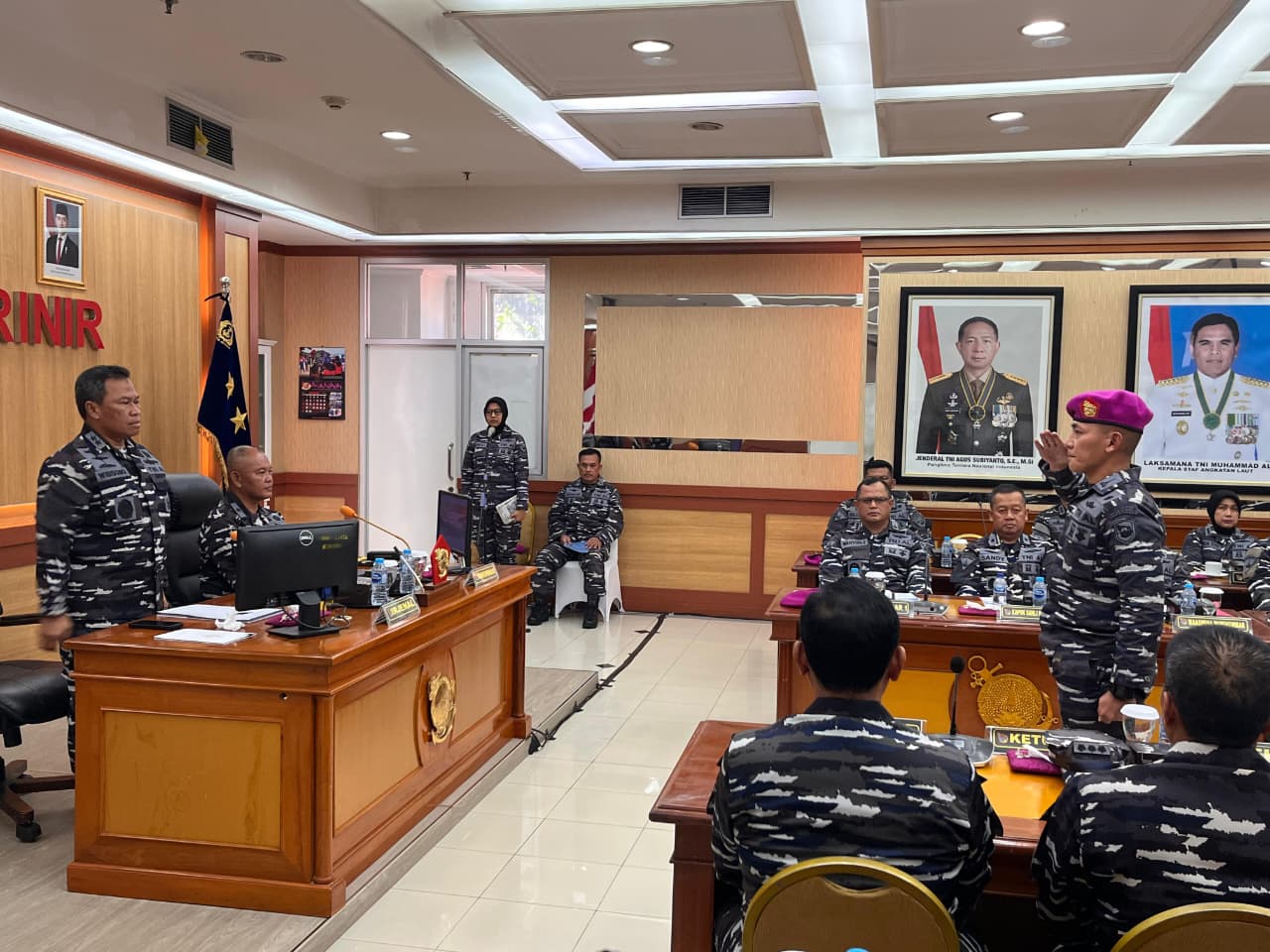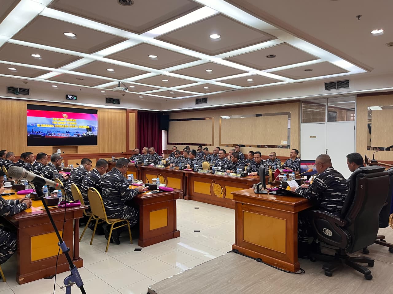 Dispen Kormar, TNI Angkatan Laut (Jakarta). Inspektur Korps Marinir (Ir Kormar) Brigadir Jenderal TNI (Mar) Ahmad Fajar, S.M. didampingi jajaran pimpinan Korps Marinir memimpin langsung, acara Taklimat Awal Audit Kinerja Inspektorat Jenderal TNI Angkatan Laut (Itjenal) Laksamana Muda TNI Achmad Wibisono S.E., CHRMP, Yang bertempat di Ruang rapat, gedung Agoes Soebekti Kesatrian Marinir Ali Sadikin Mako Kormar, Jl. Prajurit KKO Usman dan Harun No.40, Jakarta Pusat, Senin (15/09/2025).