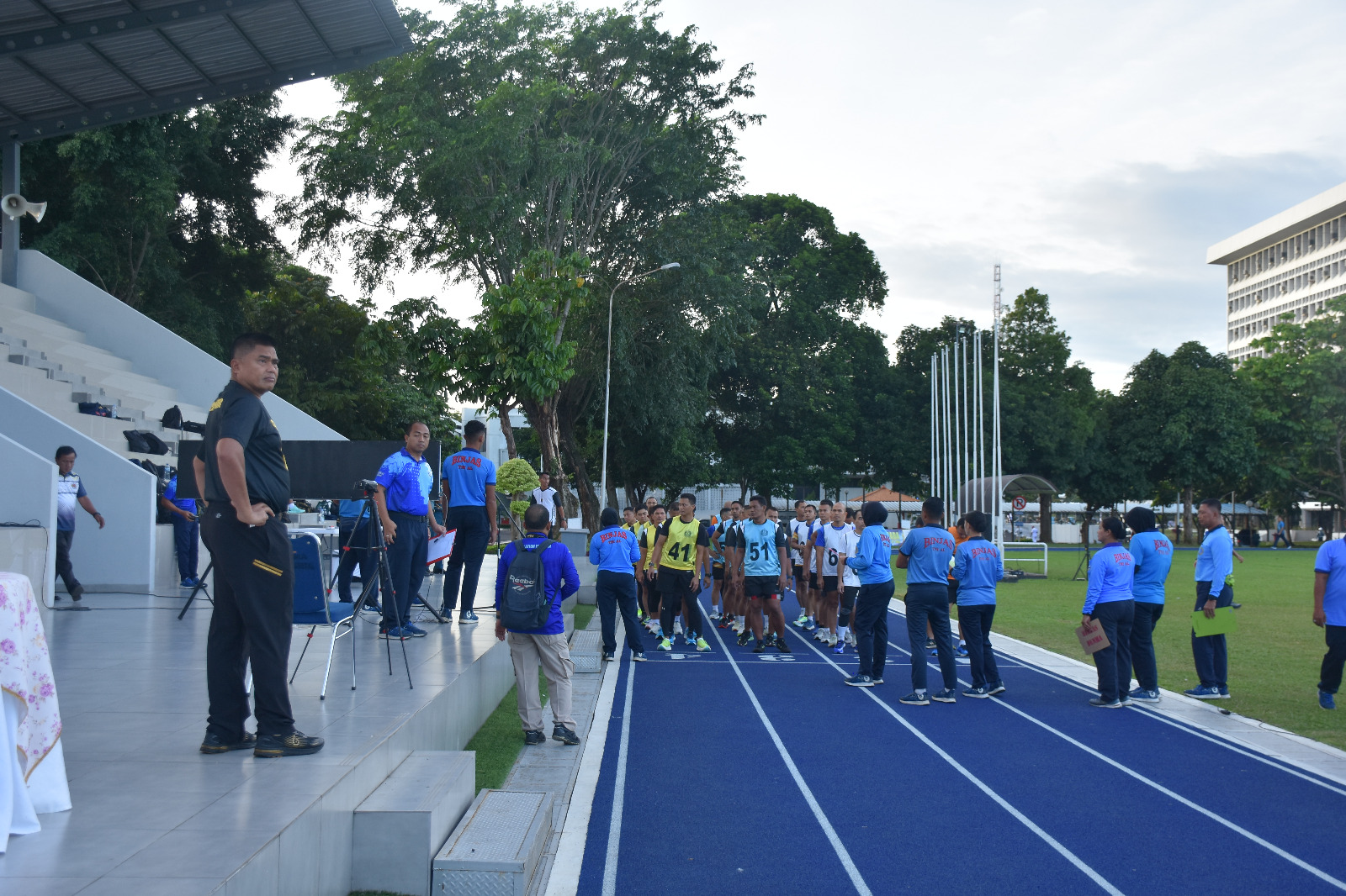 TNI Angkatan Laut. Dispen Kormar (Jakarta). Calon Perwira Siswa (Casis) Sekolah Staf dan Komando TNI Angkatan Laut (Seskoal) angkatan ke-63 mengikuti Tes Samapta, di Stadion Trisila Markas Besar TNI Angkatan Laut. Cilangkap. Jakarta Timur. Kamis (19/12/2024).