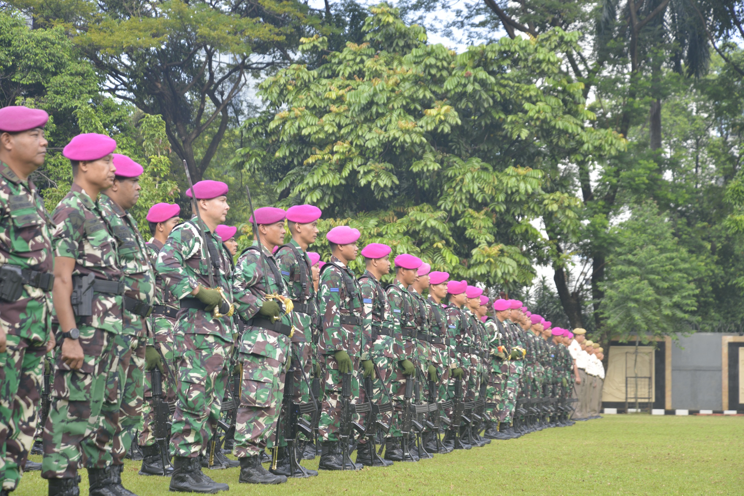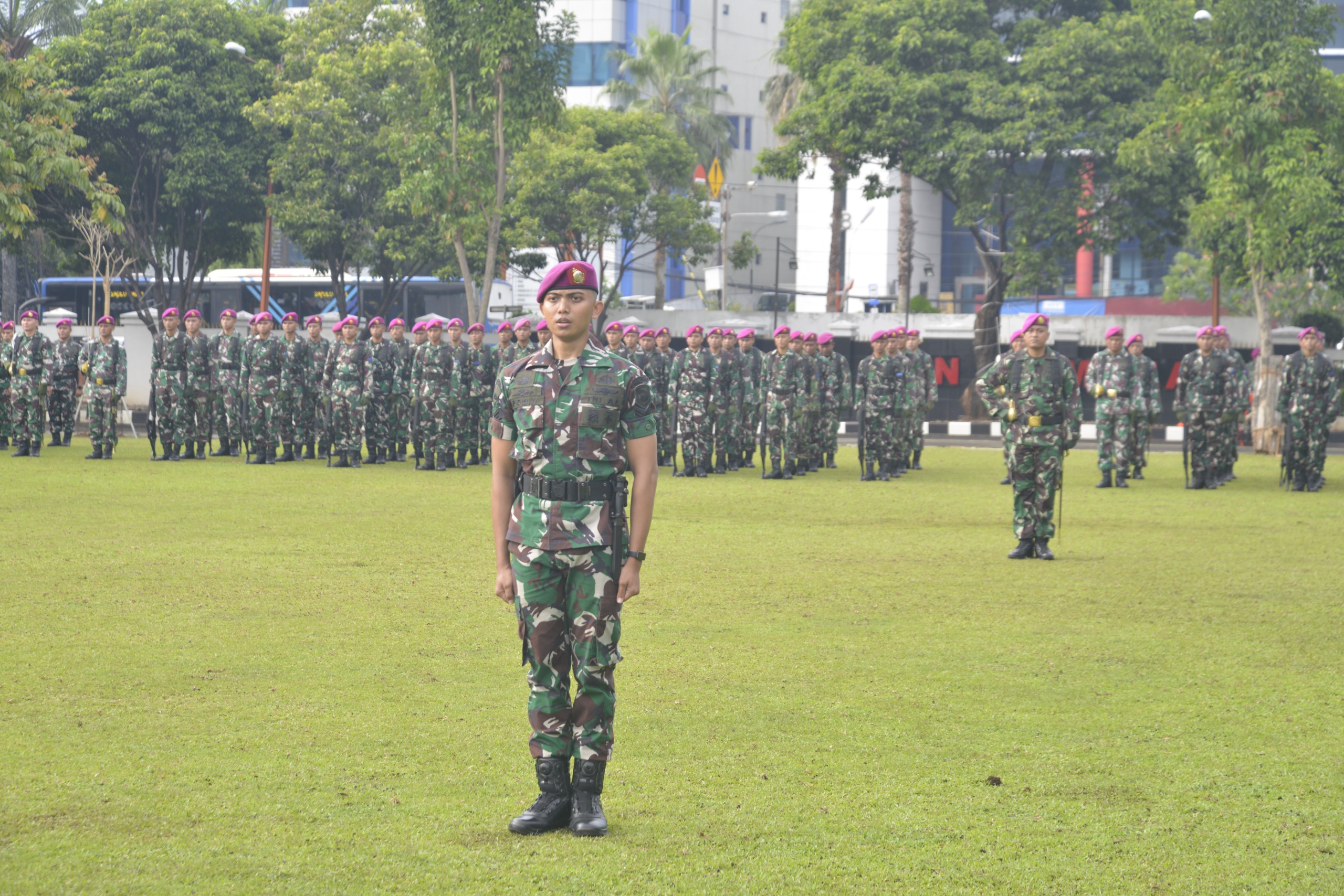 Dispen Kormar TNI Angkatan Laut (Jakarta). Komandan Denma Markas Komando Korps Marinir (Dandenma Mako Kormar) Letnan Kolonel Marinir Fauzi Safiâi, S.A.P., M.Tr.Opsla., bertindak selaku inspektur upacara pada upacara penaikkan bendera Merah Putih, di lapangan apel Mako Kormar jl. Prajurit KKO Usman dan Harun No. 40 Jakarta Pusat, Senin (19/05/2025).