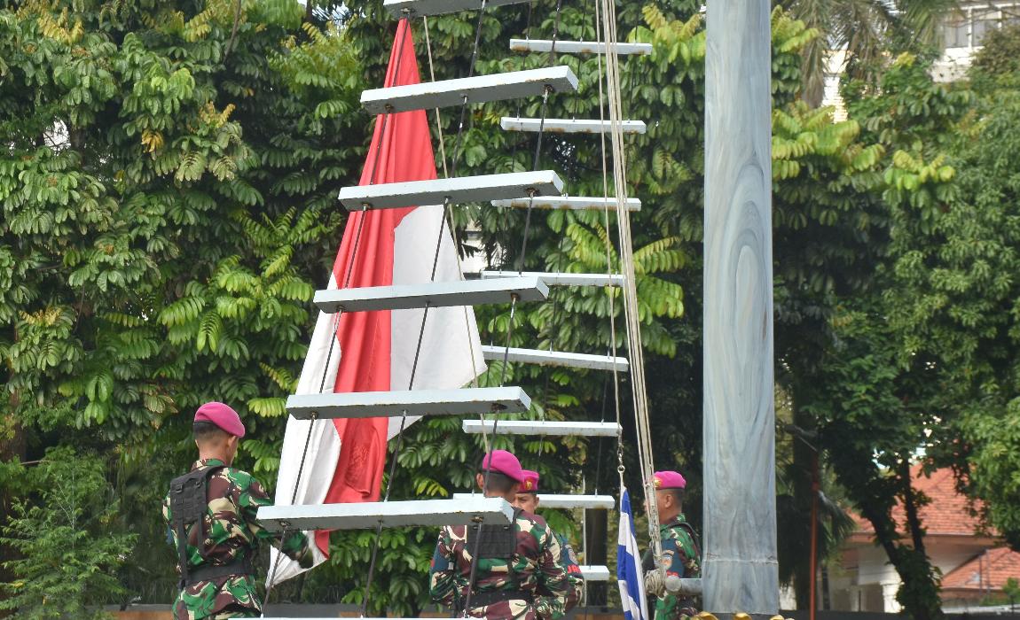 Pada Upacara Bendera ini selaku Komandan Upacara Mayor Marinir Rusbal., Perwira Upacara Kapten Niapelee Marinir Niapelee, Pengucap Sapta Marga Serda Mar Fadil dan diikuti para Perwira, Bintara, Tamtama dan segenap Pegawai Negeri Sipil