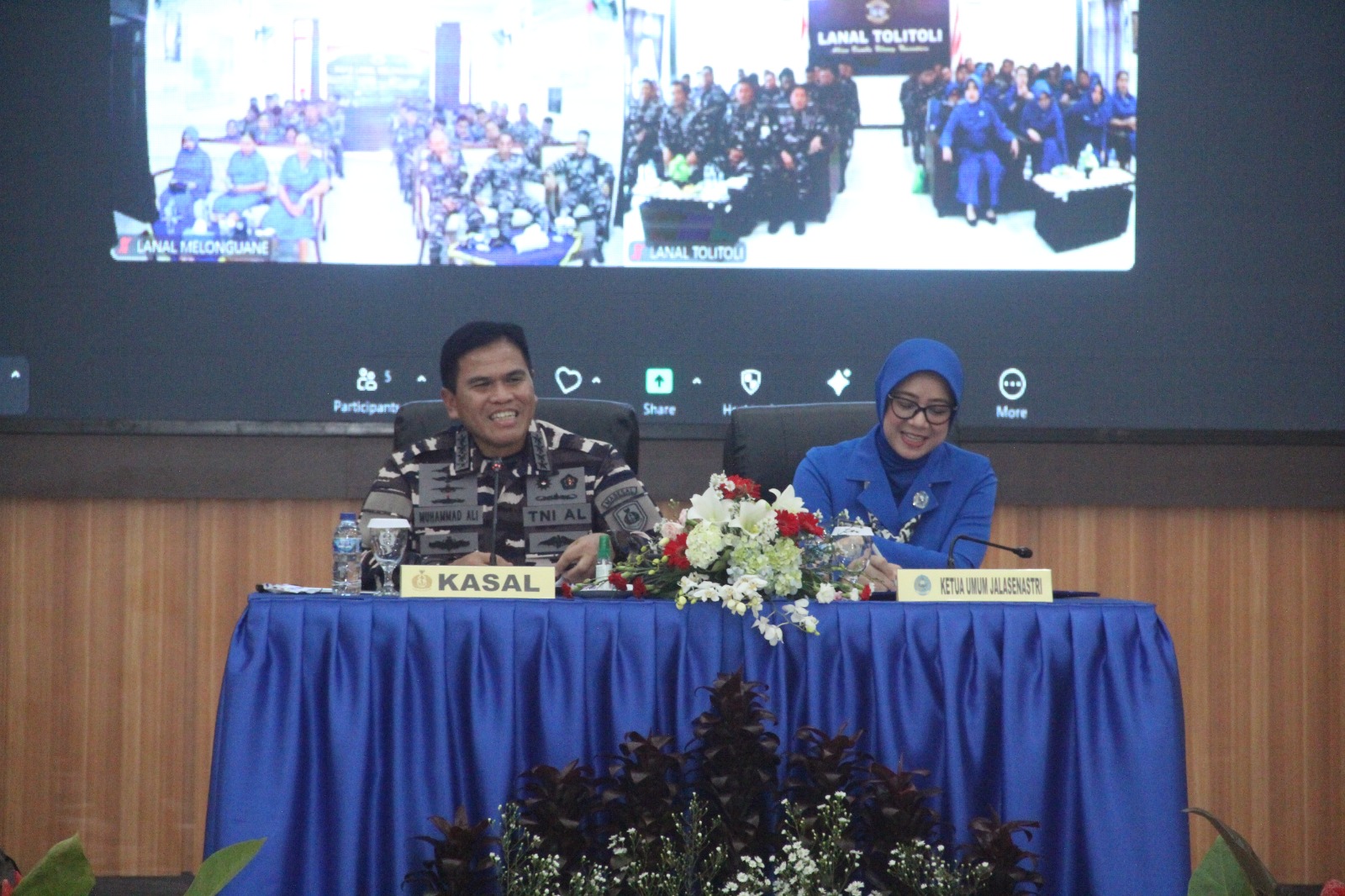 Tiba di Mako Lantamal VIII Manado, Kasal dan Ketua Umum Jalasenastri beserta rombongan disambut dengan tarian Maengket dilanjutkan Foto bersama, yel-yel dari prajurit Lantamal VIII, Laporan Komando Danlantamal VIII di Lobby Mako Lantamal VIII, sambutan dan pengarahan Kepala Staf Angkatan Laut.
