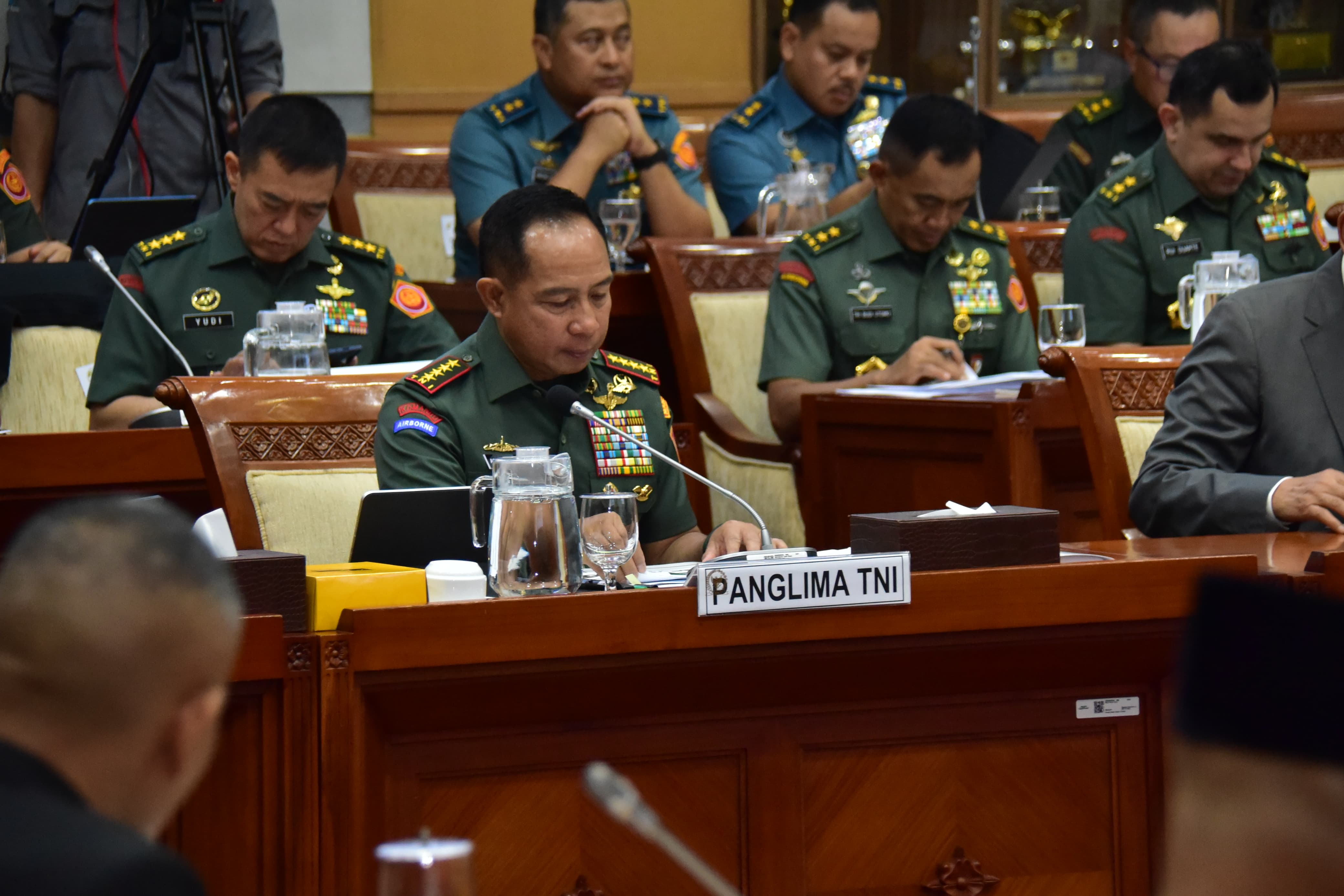 Rapat kerja komisi I DPR RI dengan menteri Pertahanan RI dan Panglima TNI serta Kepala Staf AD, Kepala Staf AL dan Kepala Staf AU untuk membahas program kerja serta persiapan keamanan Pilkada serentak 2024 dan membahas hal-hal lain yang dipimpin ketua Komisi I DPR RI Utut Adianto.