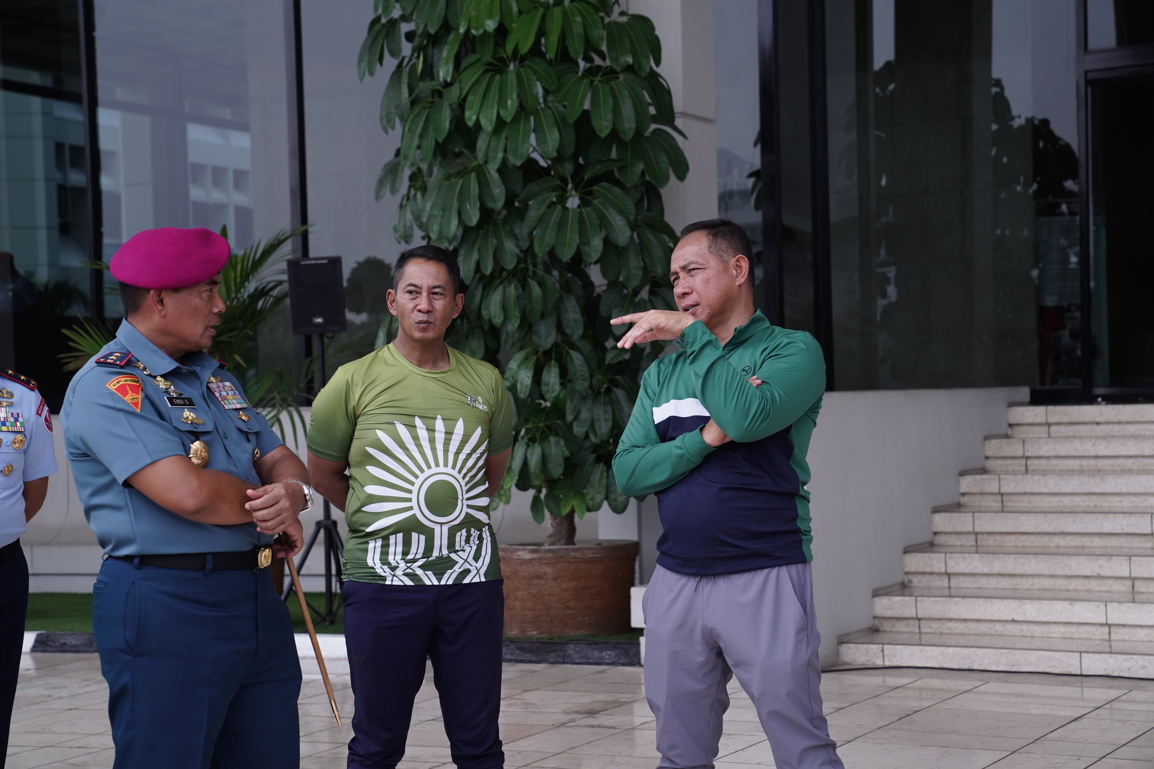 Dispen Kormar TNI Angkatan Laut (Jakarta). Komandan Korps Marinir (Dankormar) Mayor Jenderal TNI (Mar) Dr. Endi Supardi., S.E., M.M., M.Tr.Opsla., CHRMP., CRMP. mendampingi Panglima TNI Jenderal TNI Agus Subiyanto, S.E., M.Si. meninjau gelar bekal Kelengkapan Perorangan Lapangan (Kaporlap) dan Kelengkapan Satuan dan Lapangan (Kapsatlap) untuk Satuan Tugas (Satgas) Operasi Dalam Negeri TA 2025, bertempat di Plaza Mabes TNI, Cilangkap, Jakarta Timur, Rabu (30/10/2024).