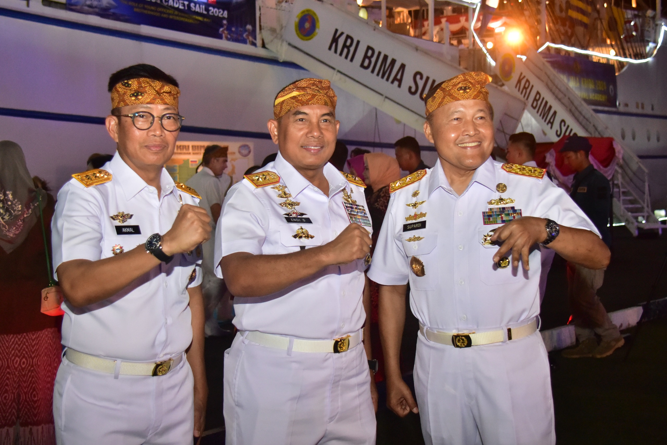 Cocktail Party yang dilaksanakan di atas KRI Bima Suci-945 yang saat ini tengah sandar di Dermaga Kolinlamil dilaksanakan dalam rangka pelaksanaan Pelayaran ASEAN Plus Cadet Sail (APCS) 2024, dihadiri langsung oleh Kepala Staf Angkatan Laut (Kasal) Laksamana TNI Dr. Muhammad Ali, S.E., M.M., M.Tr.Opsla. didampingi Ketua Umum Jalasenastri Ny. Fera Muhammad Ali, Pejabat Utama Mabesal, duta besar serta Atase pertahanan negara sahabat dan Pejabat TNI AL Wilayah Jakarta.