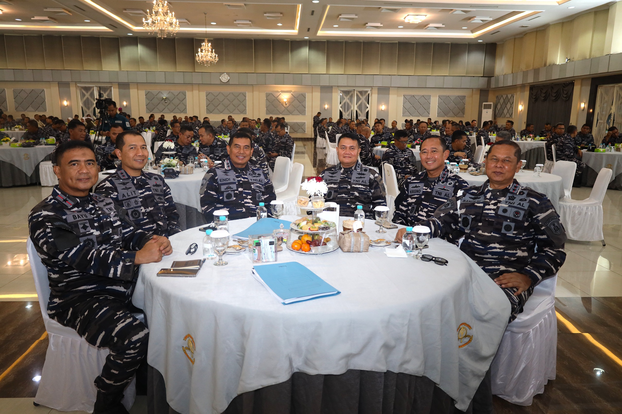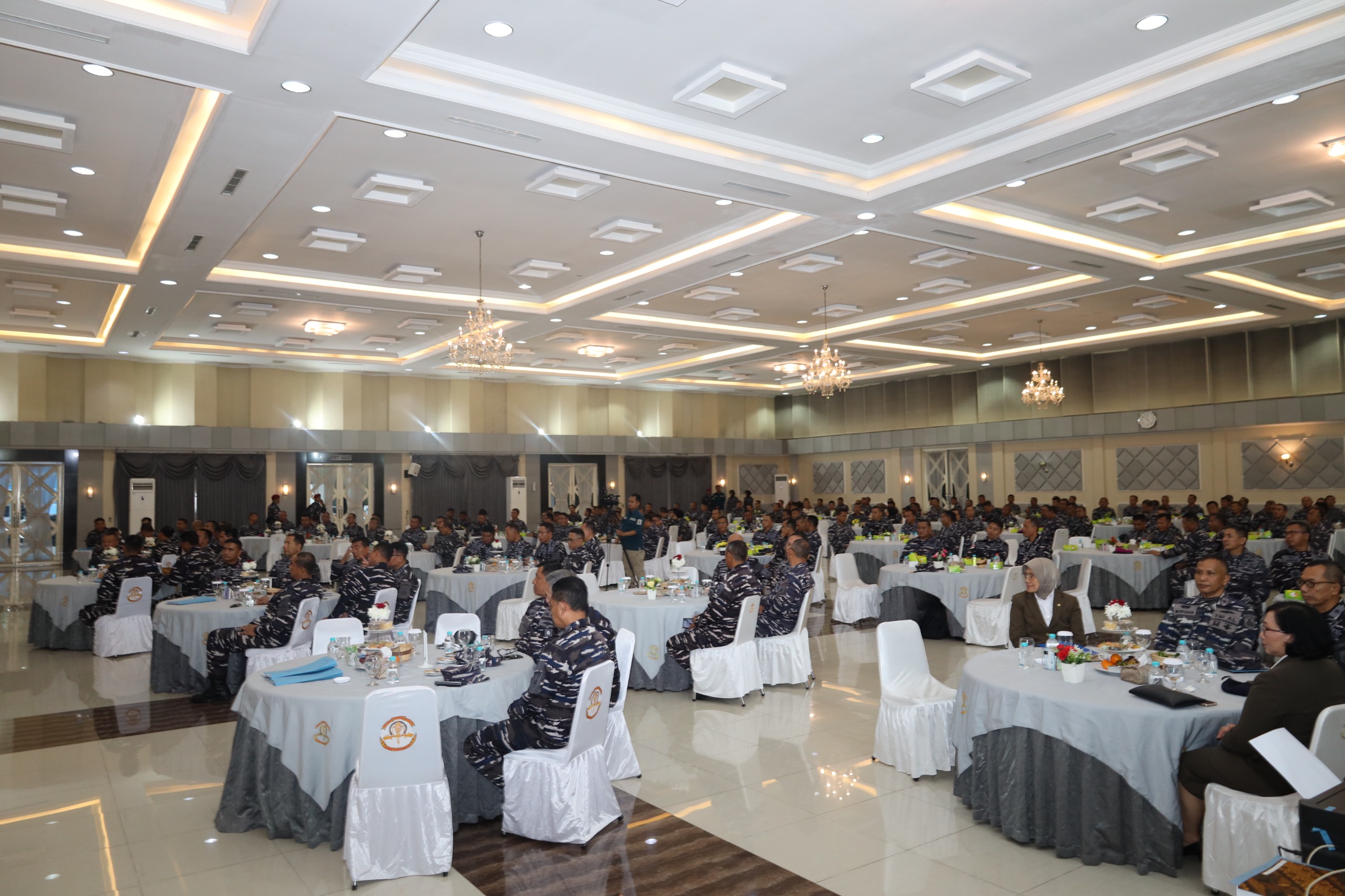 Tampak hadir pada acara, Pangkoarmada RI Laksamana Madya TNI Dr. Denih Hendrata, S.E., M.M., Danpushidrosal Laksamana Madya TNI Dr. Budi Purwanto, S.T., M.M., Dankodiklatal Letjen TNI (Mar) Nur Alamsyah, S.E., M.M., M.Tr (Han)., para Pejabat Utama Mabesal, para Pangkotama TNl AL, para Rektor serta Direktur Perguruan Tinggi.