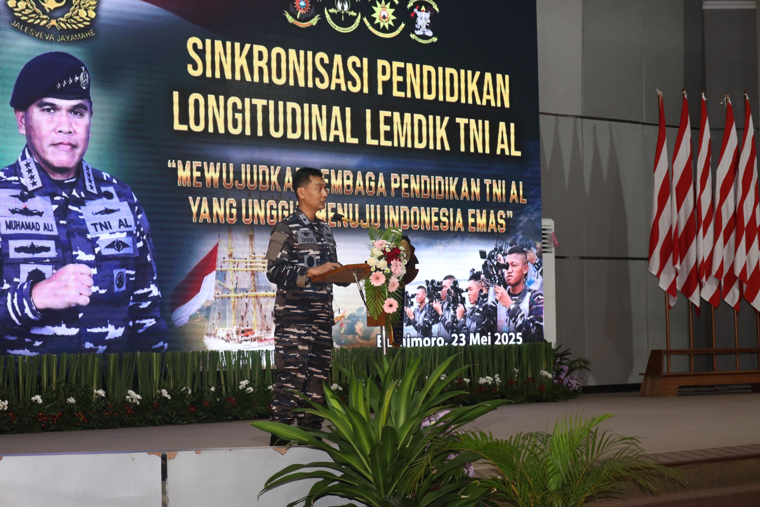 Dispen Kormar, TNI Angkatan Laut (Surabaya). Komandan Korps Marinir (Dankormar) Mayjen TNI (Mar) Dr. Endi Supardi, S.E., M.M., M.Tr.Opsla., CHRMP, CRMP., menghadiri acara Sinkronisasi Longitudinal Lembaga Pendidikan (Lemdik) TNI Angkatan Laut yang dipimpin oleh Kepala Staf Angkatan Laut (Kasal) Laksamana TNI Dr. Muhammad Ali, S.E., M.M., M.Tr.Opsla., bertempat di Gedung Maspardi AAL, Bumimoro, Surabaya. Jum'at (23/05/2025).