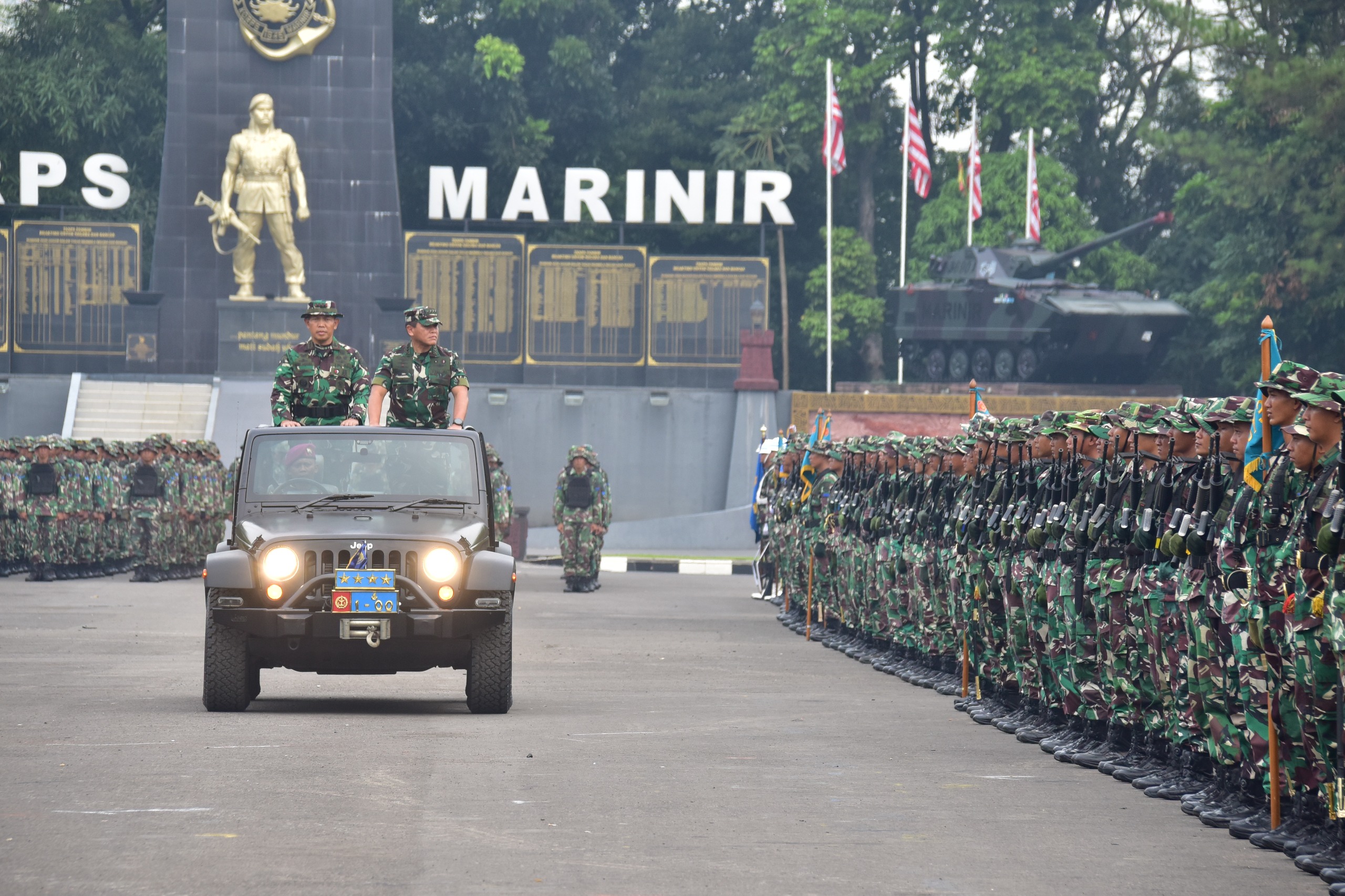 Dispen Kormar TNI Angkatan Laut (Jakarta). Komandan Korps Marinir (Dankormar) Mayjen TNI (Mar), Dr. Endi Supardi, S.E., M.M., M.Tr.Opsla., CHRMP., CRMP., menghadiri Upacara Pelepasan Kontingen Upacara TNI Angkatan Laut dalam rangka HUT ke-79 TNI, bertempat di lapangan Brigif 1 Kesatrian Marinir Hartono Cilandak, Jakarta Selatan. Selasa (24/09/2024).