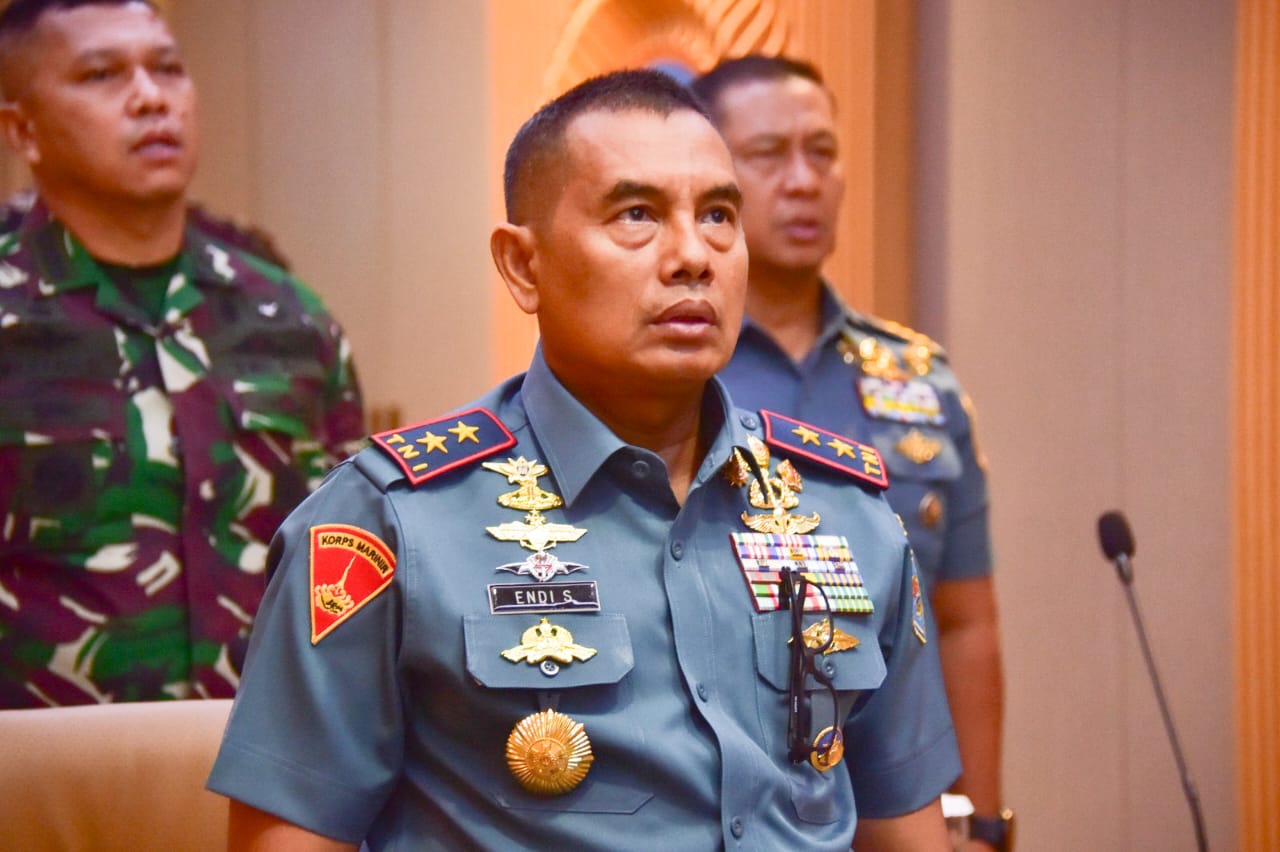 Dispen Kormar TNI Angkatan Laut (Jakarta). Komandan Korps Marinir (Dankormar) Mayor Jenderal TNI (Mar) Endi Supardi, S.E., M.M., M.Tr.Opsla., CHRMP., CRMP. mengikuti upacara pembukaan Latihan Armada Jaya (AJ) XLII TA 2024 secara Video Confrence (Vicon) dari ruang Vicon Puskodal Kormar (Pusat Komando dan Pengendalian Korps Marinir) gedung Agoes Subekti Mako Kormar, jalan Prajurit KKO Usman dan Harun No. 40 Kwitang, Jakarta Pusat, Senin (05/08/2024).