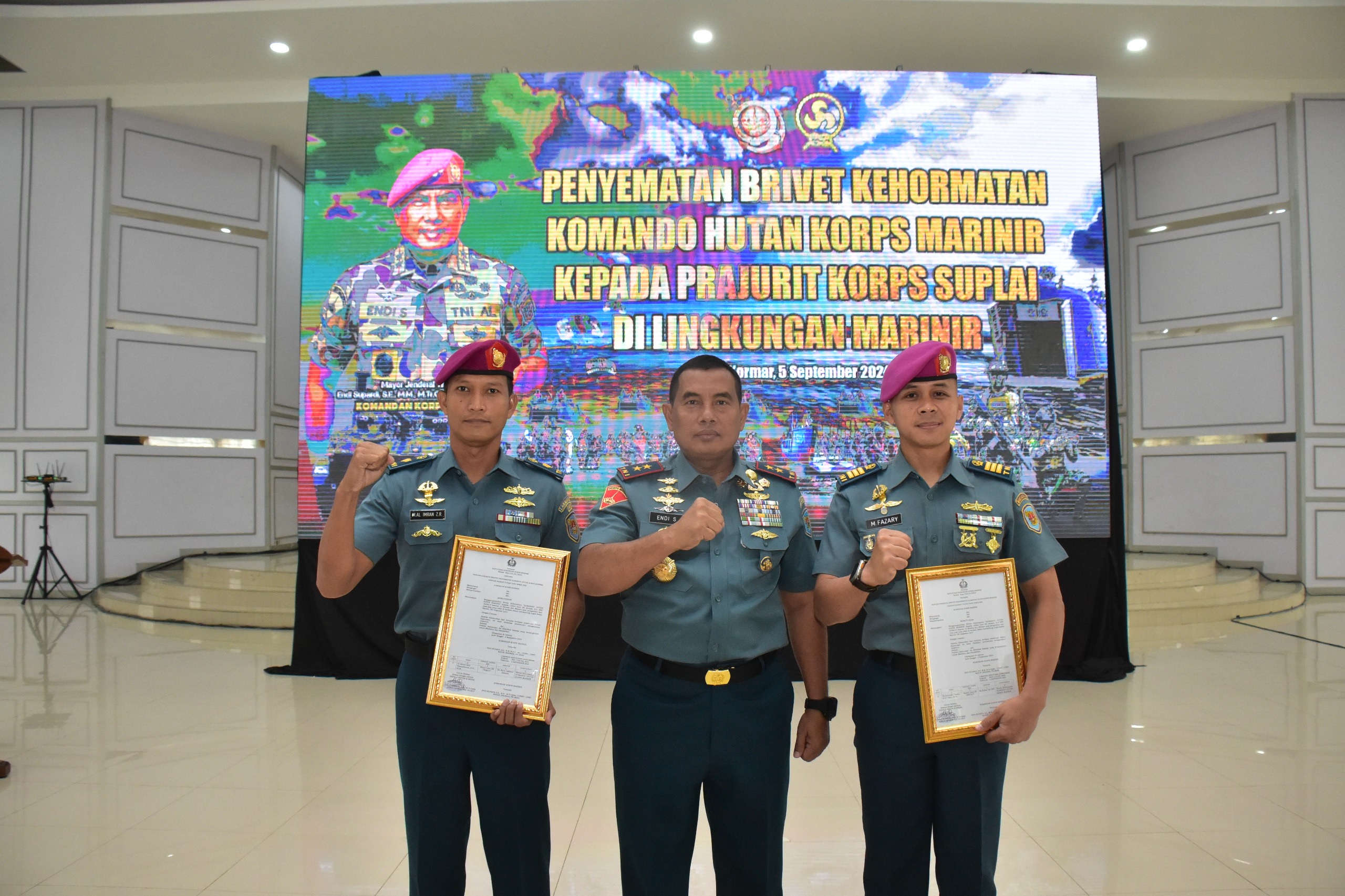 Masih dalam acara yang sama Komandan Korps Marinir menyematkan Brivet kehormatan Komando Hutan (Kohut) Korps Marinir kepada dua perwira Korps Suplai yaitu Mayor Laut (S) M Al Imran Z R dan Kapten Laut (S) M Fazary dilanjutkan pemotongan tumpeng dan foto bersama Dankormar.