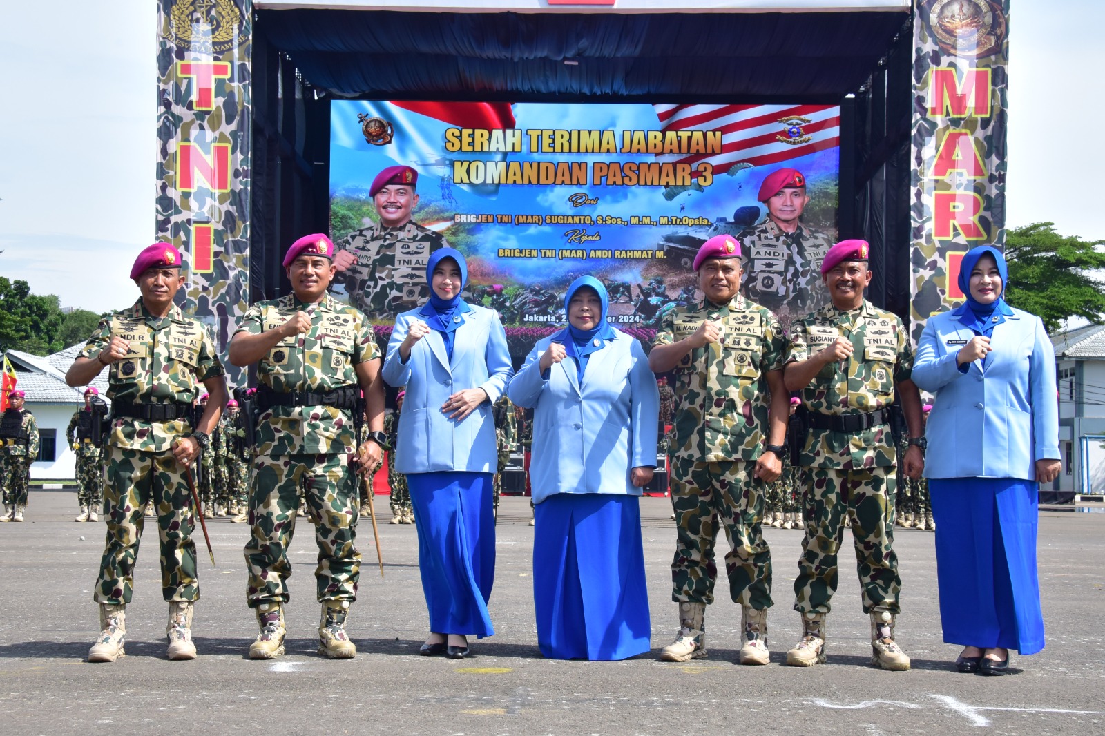 Dispen Kormar TNI Angkatan Laut (Jakarta). Komandan Korps Marinir (Dankormar) Mayor Jenderal TNI (Mar) Dr. Endi Supardi, S.E., M.M., M.Tr.Opsla., CHRMP., CRMP., memimpin serah terima jabatan Komandan Pasmar 3 Sorong dari Brigjen TNI (Mar) Sugianto, S.Sos., M.M., M.Tr.Opsla kepada Brigjen TNI (Mar) Andi Rahmat M., bertempat di lapangan apel Brigif 1 Kesatrian Marinir Haryono, Cilandak Jakarta Selatan. Jumâat (22/11/2024).