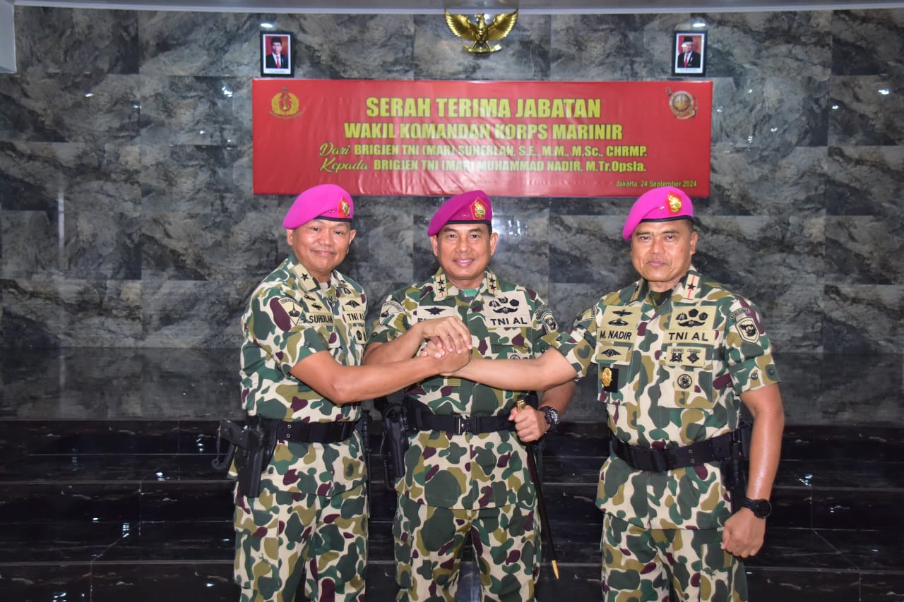 Jabatan Wadankormar diserahterimakan dari Brigjen TNI (Mar) Suherlan, S.E., M.M., M.Sc., CHRMP. kepada Brigjen TNI (Mar) Muhammad Nadir, M.Tr.Opsla., Kolonel Laut (S) Dyendy Novianto Sanny, S.E., M.Tr.Hanla. dikukuhkan menjabat Ka Kuwil Kormar, Jabatan Kadiskomlek diserahterimakan dari Kolonel Marinir M. Nur Rohman, S.E., M.M., M.Tr.Hanla. kepada Letkol Marinir Ade Lesmono, M.Tr.Opsla., Kolonel Marinir Kanang Budi Raharjo, M.Tr. Hanla., CHRMP. dikukuhkan menjabat Kadispen Kormar, dan Letkol Marinir Akhmad Kharis Mukhyiddin, S.A.P., M.Tr.Opsla., M.A.P. dikukuhkan menjabat Kapuskodal Kormar, dilaksanakan di ruang Rekreasi Yoninf 6 Marinir. Sementara Jabatan Danpasmar 2, diserahterimakan dari Brigjen TNI (Mar) Muhammad Nadir, M.Tr.Opsla. kapada Kolonel Marinir Nanang Saefulloh. S.E., M.M., dilaksanakan di lapangan apel Brigif 1 Marinir, Kesatrian Marinir Hartono Cilandak.