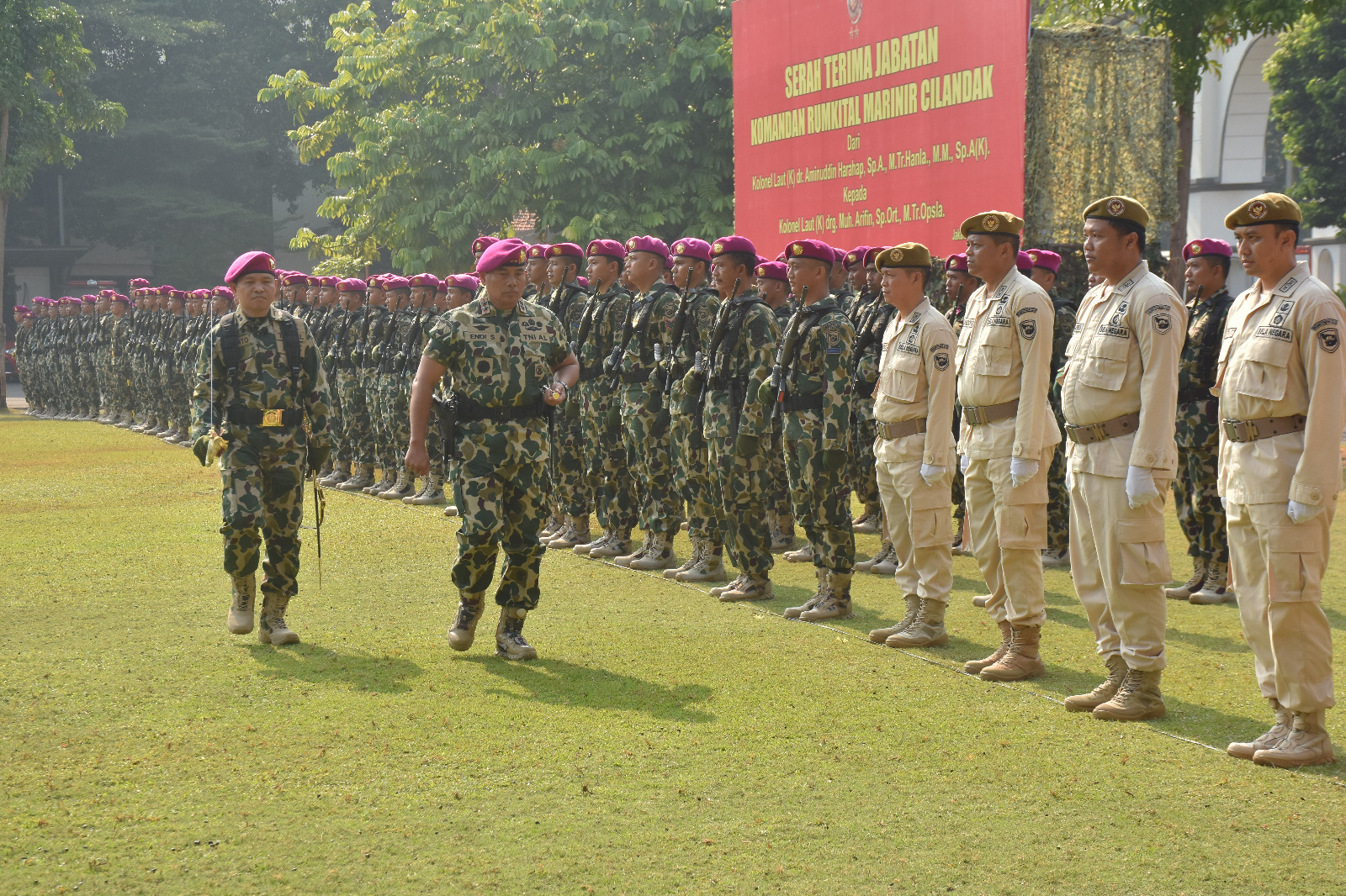 âSerah Terima Jabatan Komandan Rumkitalmar Cilandak memiliki makna yang sangat strategis dalam rangka peningkatan kualitas organisasi sekaligus menjadi peluang dan tantangan dalam membangun reputasi dan prestasi dengan harapan mampu membawa manfaat bagi organisasi dalam rangka menyikαÏι fenomena perkembangan lingkungan startegis yang dinamis, pungkas orang nomor satu dijajaran Korps Marinir.
