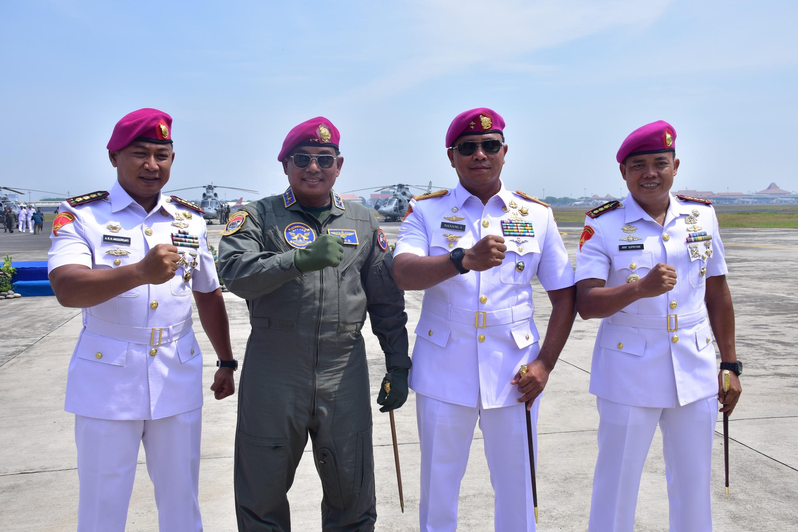 Dispen Kormar TNI Angkatan Laut (Surabaya). Komandan Korps Marinir (Dankormar) Mayor Jenderal TNI (Mar) Dr. Endi Supardi, S.E., M.M., M.Tr.Opsla., CHRMP., CRMP. beserta 10 Pati (Perwira Tinggi) TNI Angkatan Laut menerima Brevet Kehormatan Penerbangan TNI AL yang disematkan langsung oleh Komandan Pusat Penerbangan TNI Angkatan Laut (Danpuspenerbal) Laksda TNI Sisyani Jaffar, S.M. mewakili Kepala Staf Angkatan Laut (Kasal) Laksamana TNI Dr. Muhammad Ali, S.E., M.M., M.Tr.Opsla. bertempat di Baseops Lanudal Juanda, Kamis (31/10/2024).