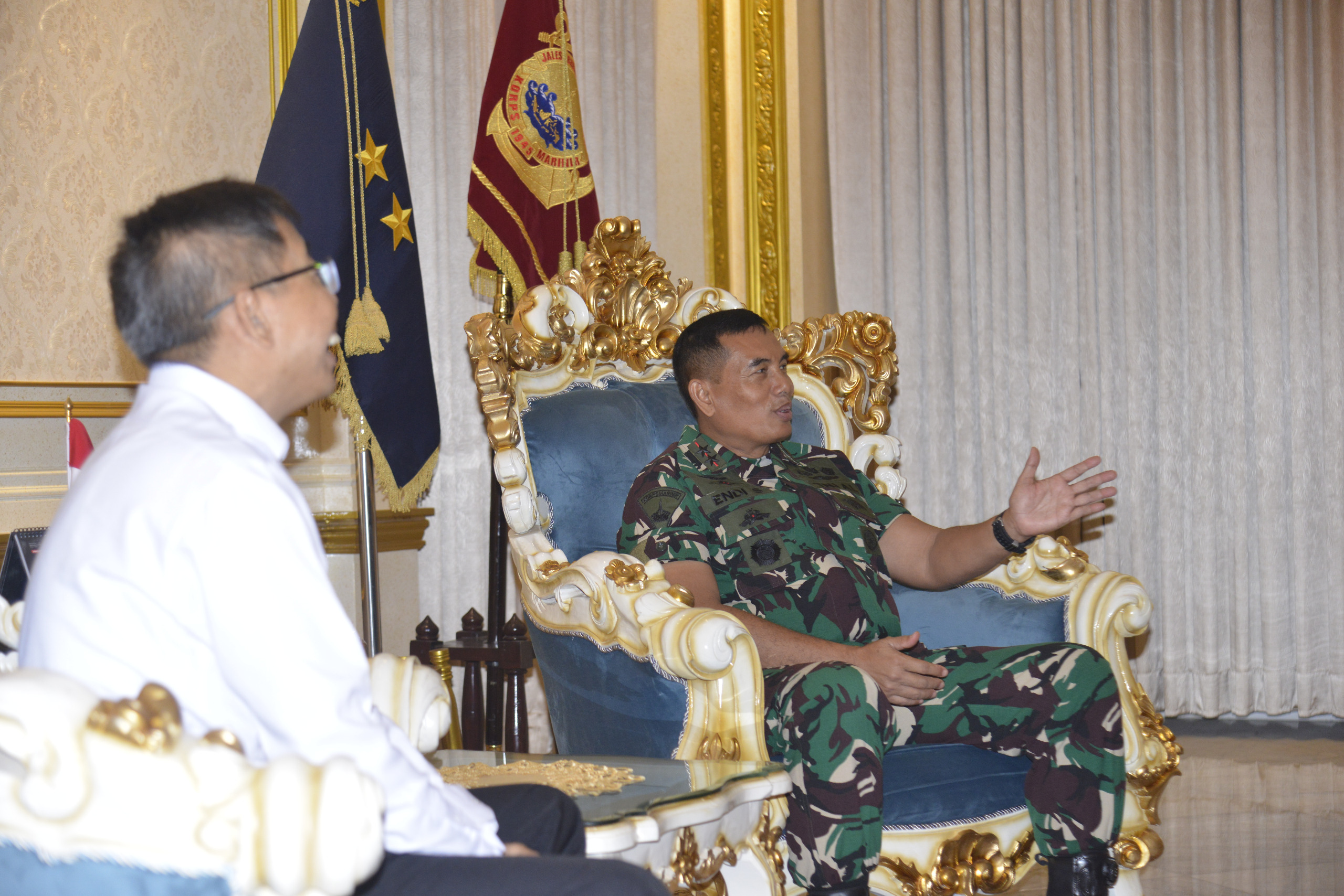 Dispen Kormar TNI Angkatan Laut (Jakarta). Komandan Korps Marinir (Dankormar) Mayor Jenderal TNI (Mar) Dr. Endi Supardi, S.E., M.M., M.Tr.Opsla., CHRMP., CRMP., terima Caurtesy Call dari Wakil Penanggung jawab 2 BPK RI Bapak Pri Heriyanto, S.E., M.M., M.A., Ak., CA., CSFA., bertempat di Admiral Room Gedung Utama Mako Kormar Jl. Prajurit KKO Usman dan Harun No. 40 Jakarta Pusat, Senin (17/03/2025).