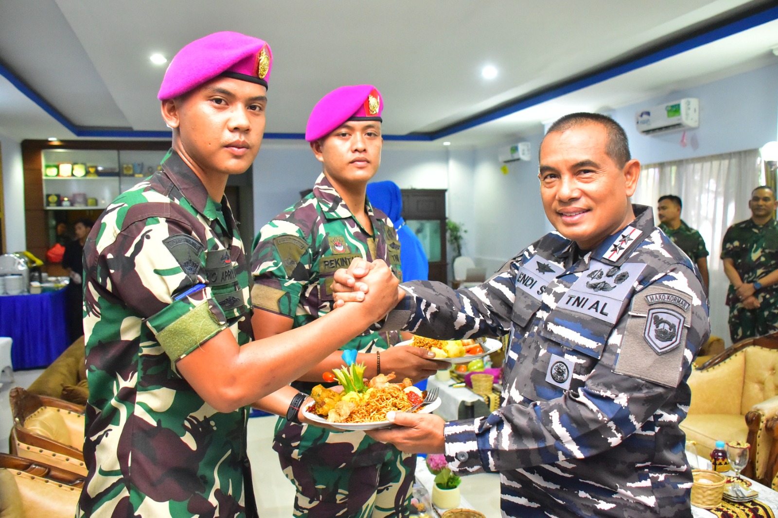 Acara dilanjutkan dengan doa dan makan tumpeng bersama Prajurit Marinir dan Jalasenastri, turut hadir Aslog Dankormar Kolonel Marinir Akhiyar Meideri, S.E., M.M., M.Han., Aspotmar Dankormar Kolonel Marinir Ferdy Erwin Takaendengan, Kadismat Kormar Kolonel Marinir Agus Taruna, S.E., M.M., Koorsmin Dankormar Letkol Marinir Tri Yudha, S.E., MSDA.