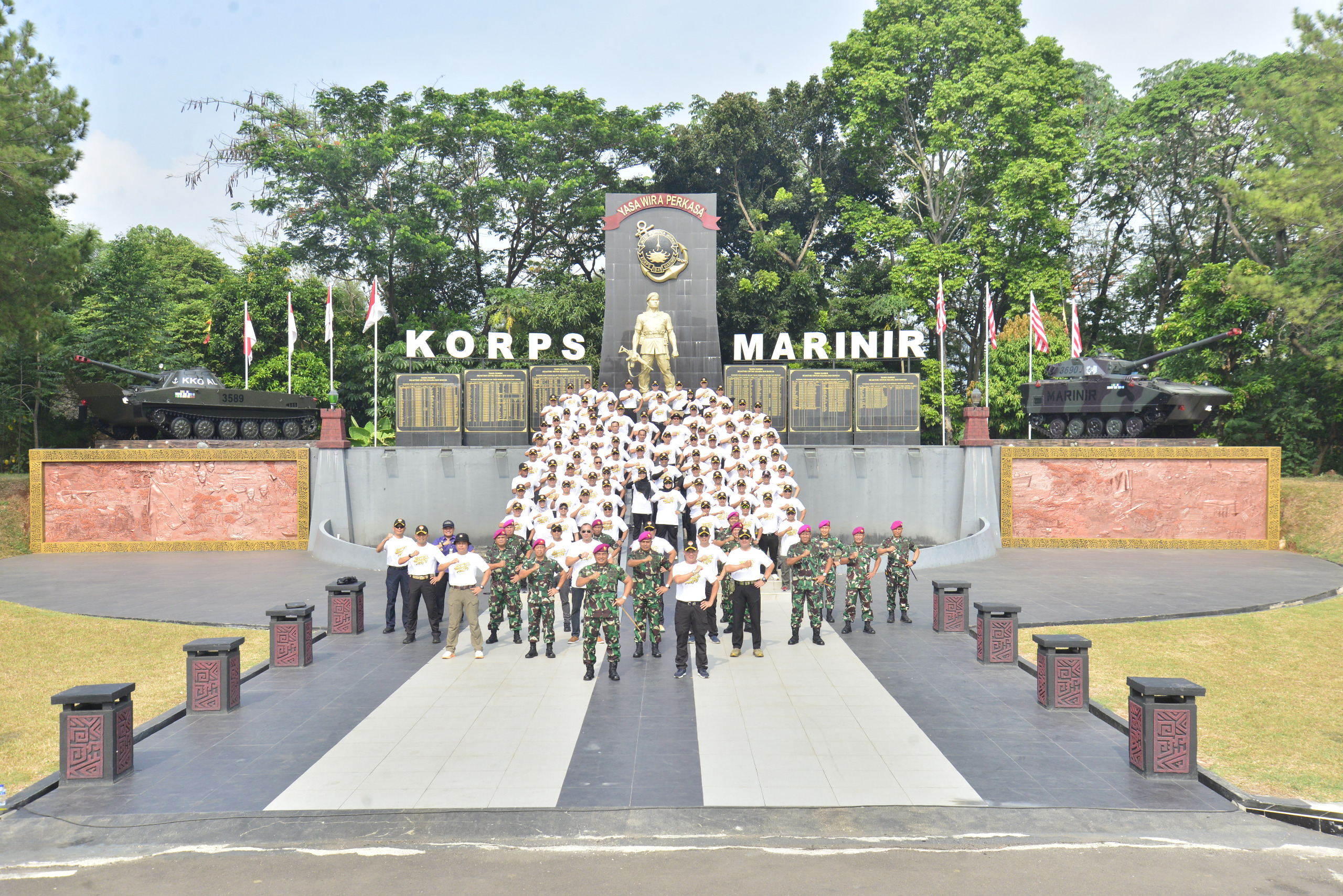 Hadir dalam giat tersebut Wadan Kormar Brigjen TNI (Mar) Muhammad Nadir, M.Tr.Opsla., Ir Kormar Brigjen TNI (Mar) Try Subandiyana, S.H., Danpasmar 1 Brigjen TNI (Mar) Umar Farouq, S.A.P., CHRMP., M.Tr.Opsla., M.Han., Para Pejabat Utama Korps Marinir.