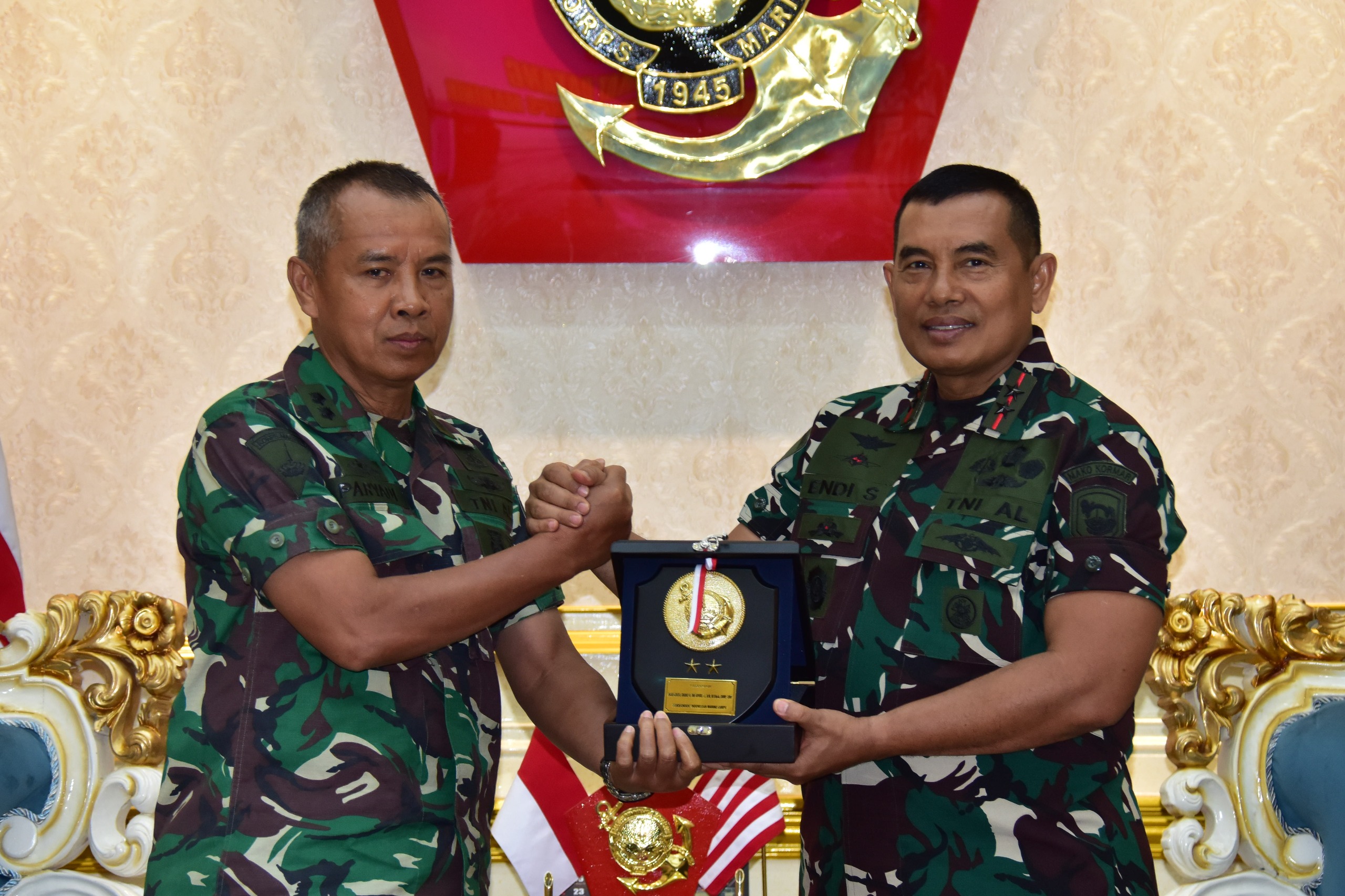 Acara tersebut diakhiri dengan penyerahan surat penghargaan, cinderamata, dan foto bersama. Hadir dalam kegiatan tersebut, Wakil Komandan Korps Marinir Brigjen TNI (Mar) Muhammad Nadir, M.Tr.Opsla., dan Para Asisten Komandan Korps Marinir.