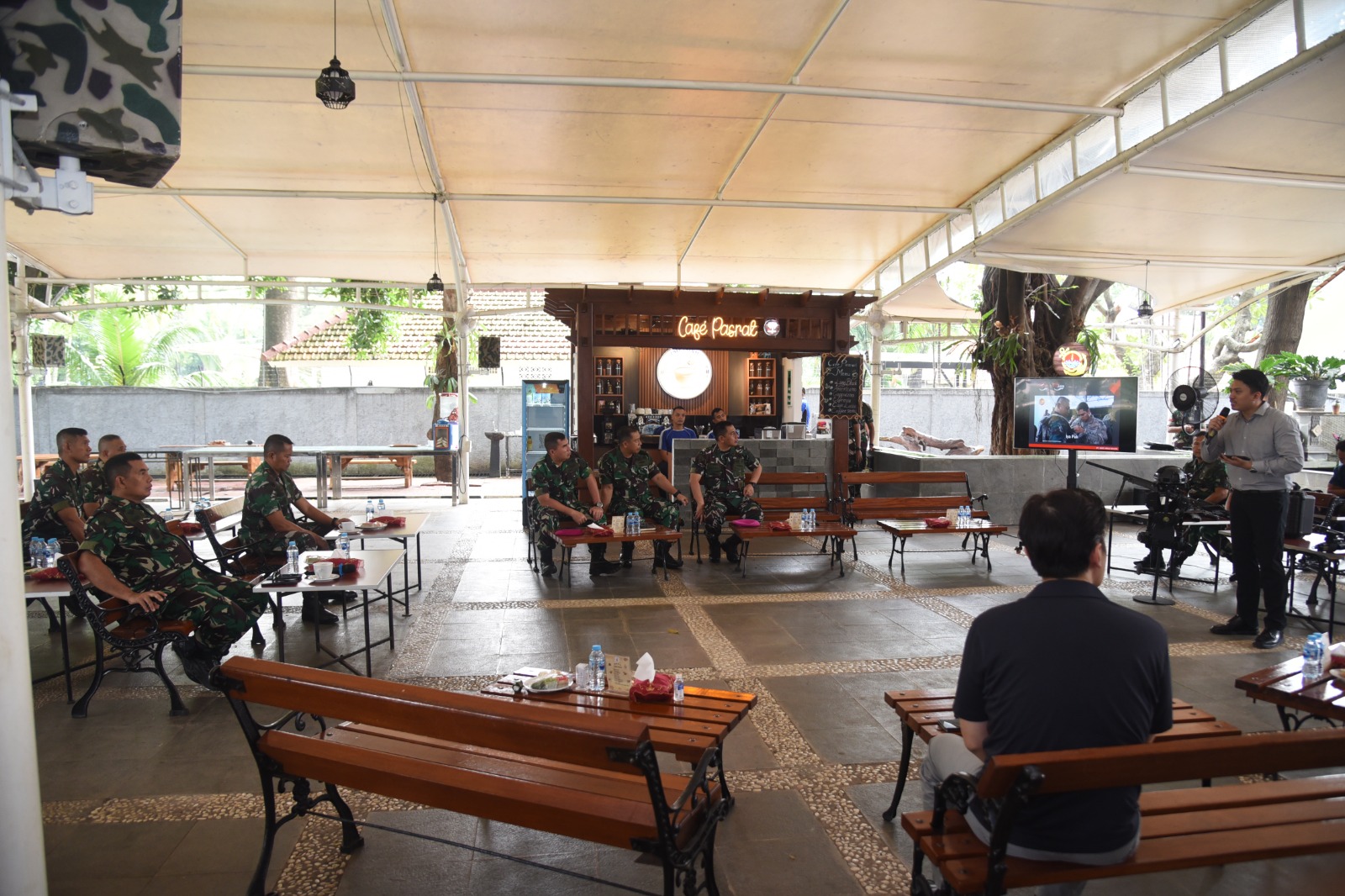 Dispen Kormar, TNI Angkatan Laut. (Jakarta). Komandan Korps Marinir (Dankormar) Mayjen TNI (Mar) Endi Supardi, S.E., M.M., M.Tr. Opsla., CHRMP., CRMP., didampingi Wadan Kormar Brigjen TNI (Mar) Suherlan, menerima paparan dan demo dari PT. Indo Arma Bhara mengenai perlengkapan Training Technology Equipment And Operation System (TTEOS), yang berlangsung di Taman Wanarata Markas Komando Korps Marinir (Mako Kormar) Jalan Prajurit KKO Usman dan Harun No. 40 Kwitang Jakarta Pusat, Rabu (24/04/2024).