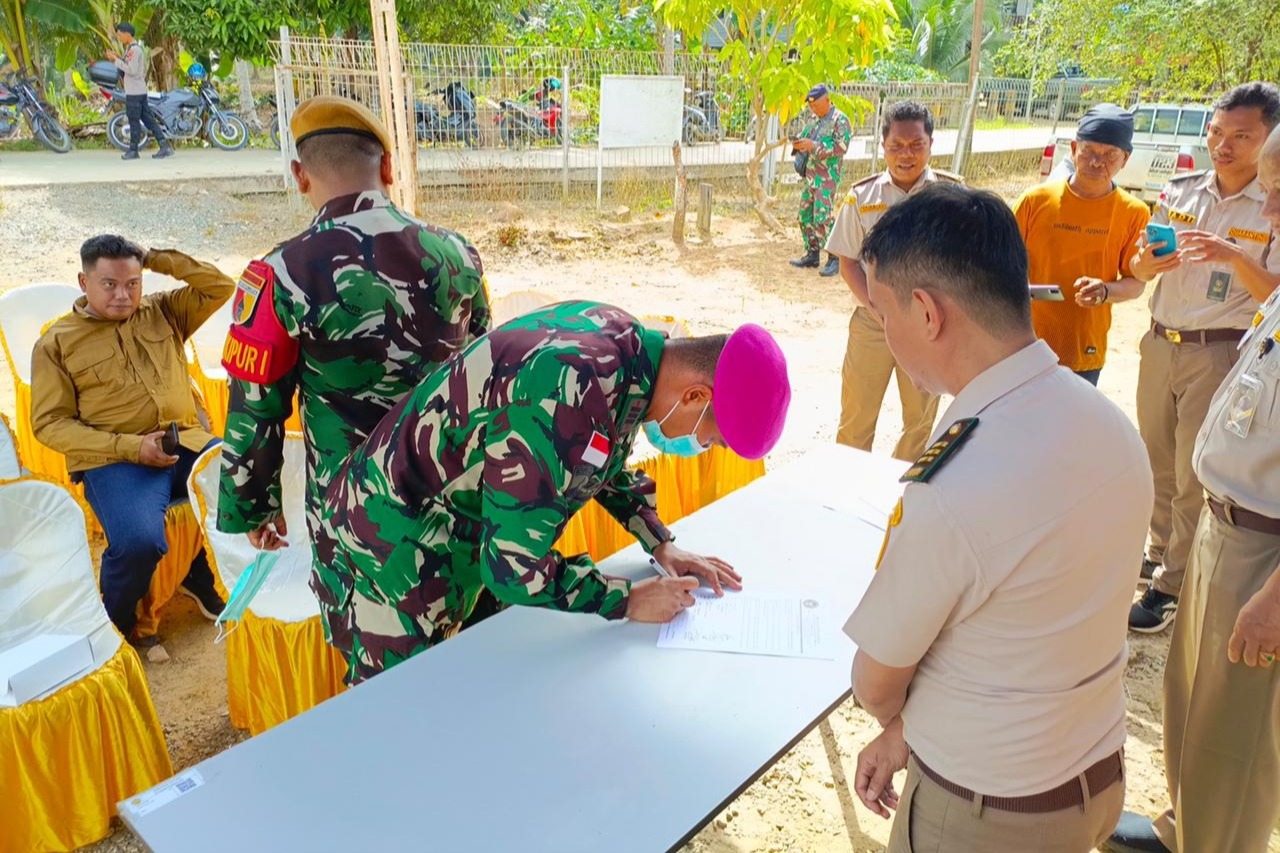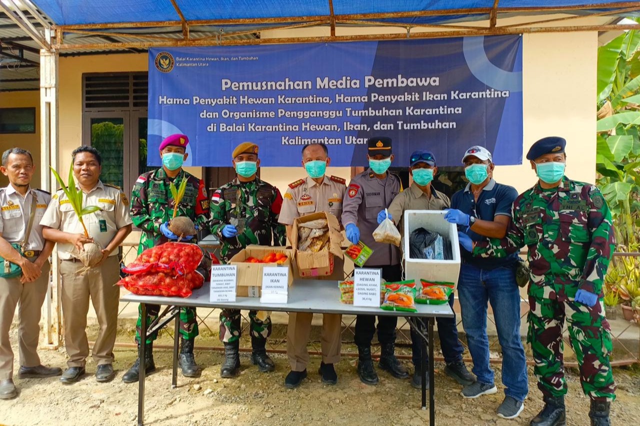 Dispen Kormar, TNI AL (Nunukan). Komandan Satgasmar Pam Ambalat XXX Kapten Marinir Oki Prabowo mengikuti kegiatan Pemusnahan Media Pembawa Hama Penyakit Hewan, Ikan, dan Tumbuhan di Rumah Dinas Balai Karantina Hewan, Ikan dan Tumbuhan Kalimantan Utara, Desa Aji Kuning, Sebatik Tengah, Nunukan, Kalimantan Utara. Selasa (09/07/2024)