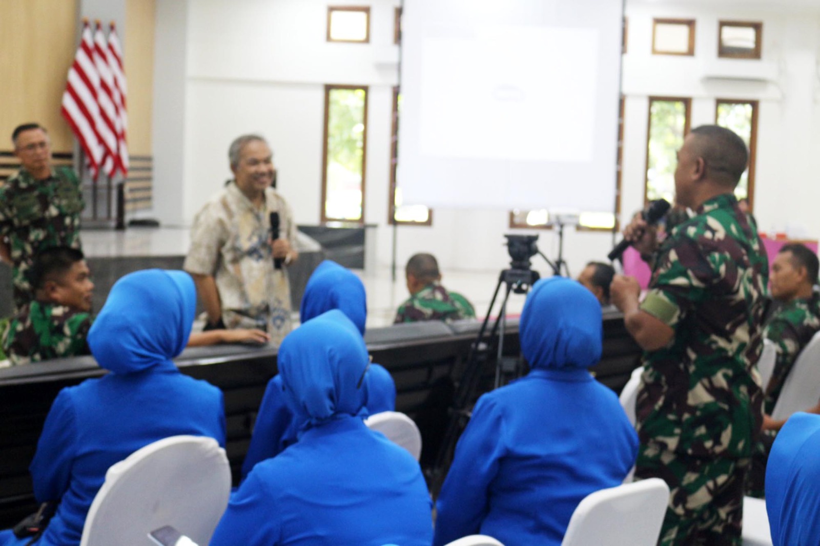Kemudian dilanjutkan dengan acara Sharing Komunikasi dan Motivasi Dampak Judi Online, Pinjam Online dan Game Online  bagi Prajurit dan Keluarga oleh Narasumber DR. Aqua Dwipayana yang menekankan jika kehidupan seorang prajurit sangat mudah hanya dengan melakukan 3B yaitu Berdoa, Bekerja dan Bersyukur serta adanya tranparasi di dalam dinas ataupun keluarga maka pasti akan terhindar dari perilaku Judi Online, Pinjam Online dan Game Online, selain itu juga dengan melupakan kesalahan pasangan, tidak berburuk sangka, tidak menutup diri dan membangun komunikasi yang baik akan terwujud hidup bahagia baik dalam dinas maupun dalam rumah tangga.