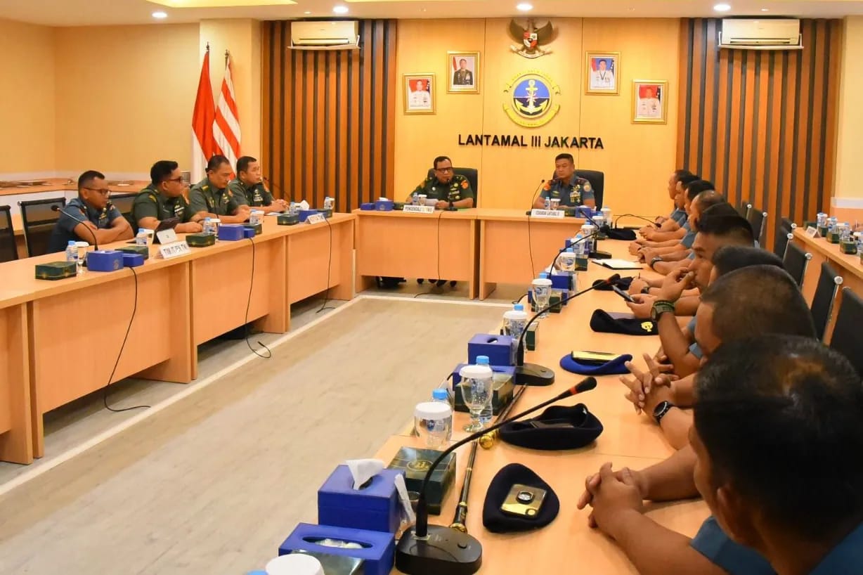 TNI AL, Dispen Kormar (Jakarta), Pasmar 1. Komandan Batalyon Marinir Pertahanan Pangkalan (Yonmarhanlan) III Jakarta Mayor Marinir Surya Affandy Novyanto, M.Tr.Opsla., mengikuti pembukaan Wasrik Itjen TNI, bertempat di ruang Rapat Mako Lantamal III Jakarta, Jakarta Utara, Senin (13/05/2024).