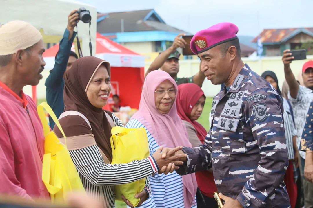 TNI AL. Komandan Batalyon Marinir Pertahanan Pangkalan (Yonmarhanlan) IX Ambon Mayor Marinir Tamyasin Hehanussa mendampingi Pj. Walikota Ambon, Drs. Bodewin M. Wattimena, MSi dalam acara Gerakan Pangan Murah Pemerintah Kota Ambon dalam rangka menyambut Hari Raya Idul Fitri Tahun 2024 bertempat di Lapangan Hatukau Galunggung, Negeri Batu Merah, Kec. Sirimau, Kota Ambon. Kamis (04/04/2024).