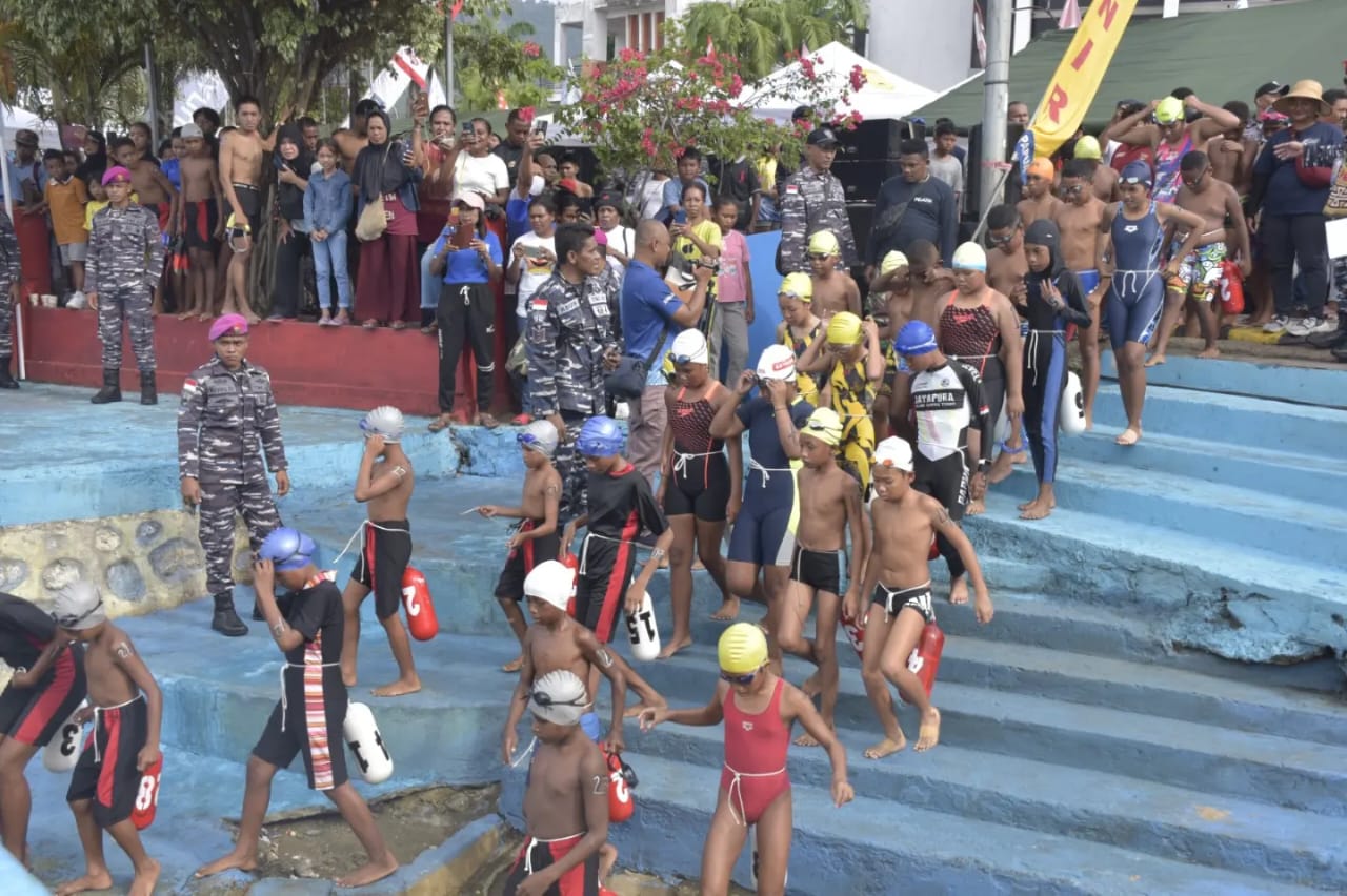 Danyonmarhanlan X Jayapura Sukseskan Pertandingan Open Water Swimming Danlantamal X CUP