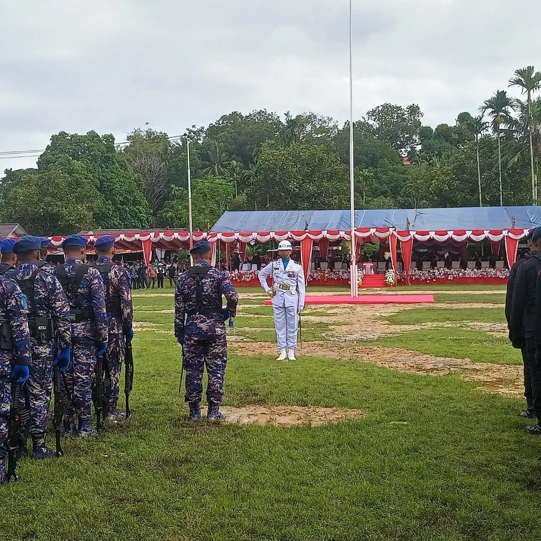 TNI AL, Dispen Kormar Sorong. Komandan Batalyon Marinir Pertahanan Pangkalan (Danyonmarhanlan) XIV bertindak sebagai Komandan Upacara (Danup) HUT ke-79 Kemerdekaan Republik Indonesia Tahun 2024 Tingkat Prov. Papua Barat Daya yang dipimpin langsung Pj. Gubernur Prov. Papua Barat Daya Dr. Drs. Muhammad Musa'ad, M.Si selaku Inspektur Upacara di lapangan Merdeka, Pulau Doom, Distrik Sorong Kepulauan, Kota Sorong, Papua Barat Daya. (Sabtu 17/08/2024).
