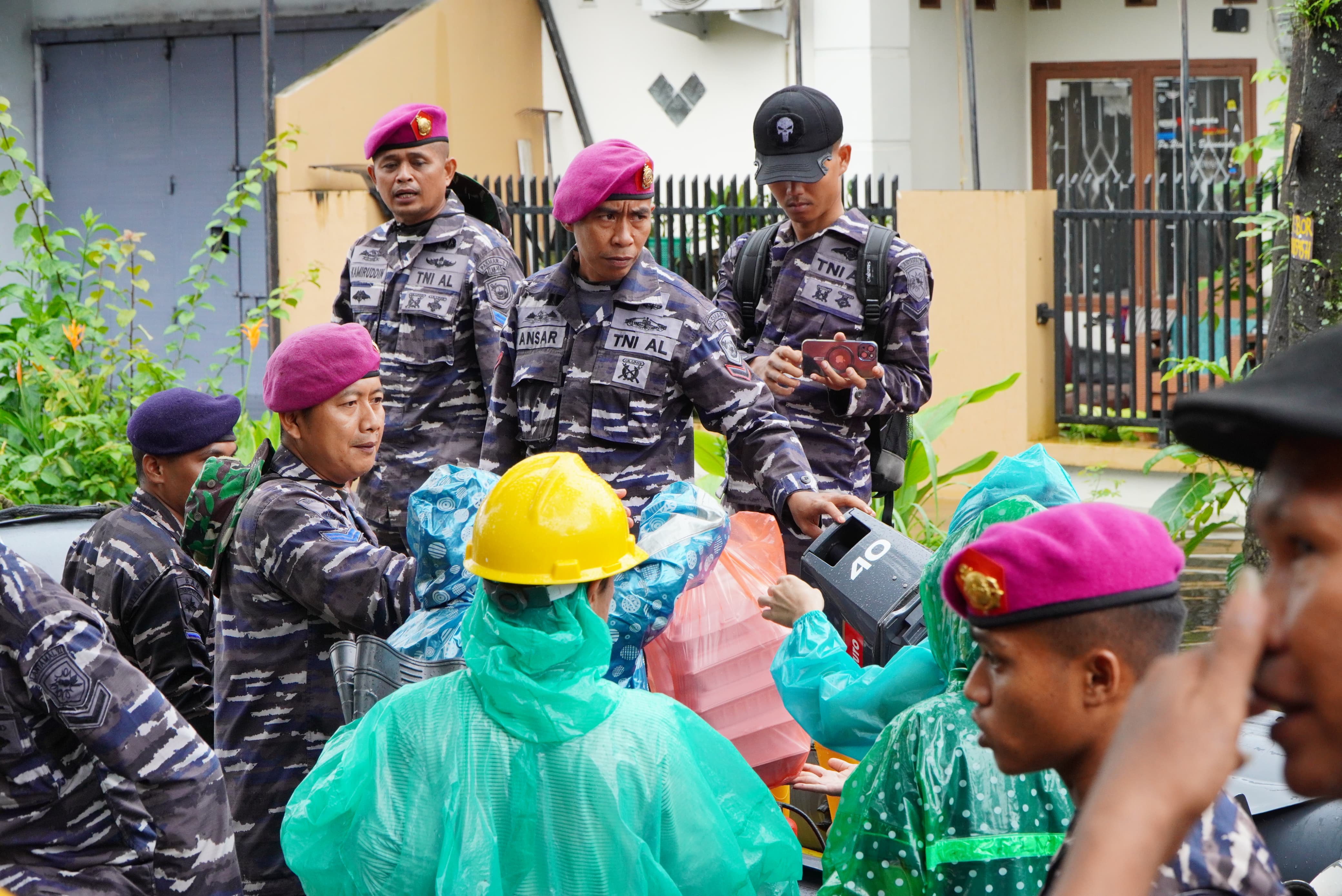 DI MAKASSAR, PRAJURIT MARINIR EVAKUASI WARGA TERJEBAK BANJIR