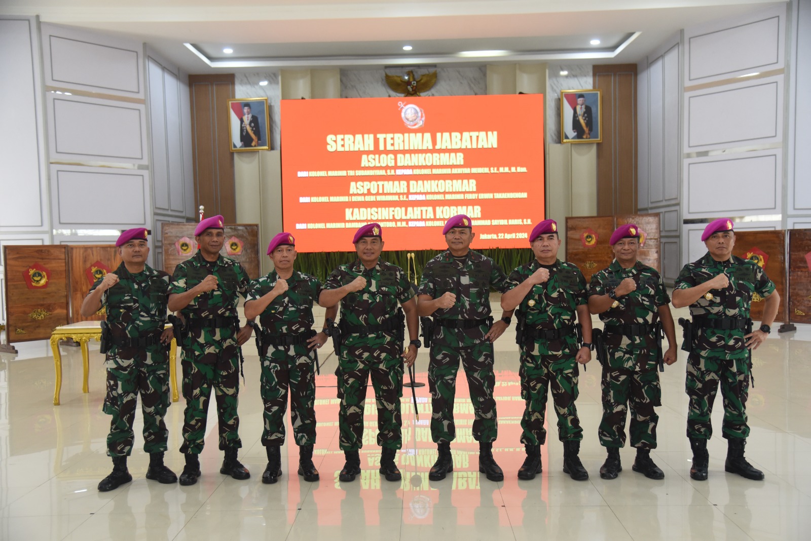 Berdasarkan Surat Perintah Komandan Korps Marinir tanggal 18 April 2024, Jabatan yang diserahterimakan antara lain Irkormar dari Brigjen TNI (Mar) Supriyono, S.E., M.M. kepada Kolonel Marinir Tri Subandiyana, S.H., Aslog Dankormar dari Kolonel Marinir Tri Subandiyana, S.H. kepada Kolonel Marinir Akhiyar Meideri, S.E., M.M., M.Han., Aspotmar Dankormar dari Kolonel Marinir I Dewa Gede Wirawan, S.E kepada Kolonel Marinir Ferdy Erwin Takaendengan dan Kadisinfolahta Kormar dari Kolonel Marinir Bambang Adriantoro, M.M. kepada Kolonel Marinir Muhammad Sayidil Haris, S.E.