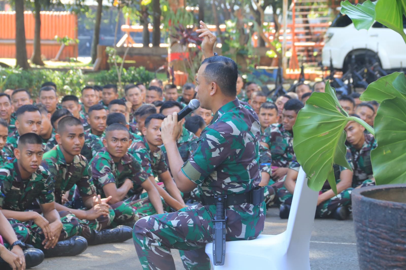 TNI AL, Pasmar 1. Mengawali tugas sebagai Komandan Resimen Artileri 1 Marinir (Danmenart 1 Mar) Kolonel Marinir Bastian Setya Laksana Putra, S.E., CTMP., melaksanakan Entry Briefing kepada Prajurit Petarung Menart 1 Marinir di depan Gedung Parang Kesatrian Marinir Hartono Cilandak, Jakarta Selatan, Senin (08/07/2024)