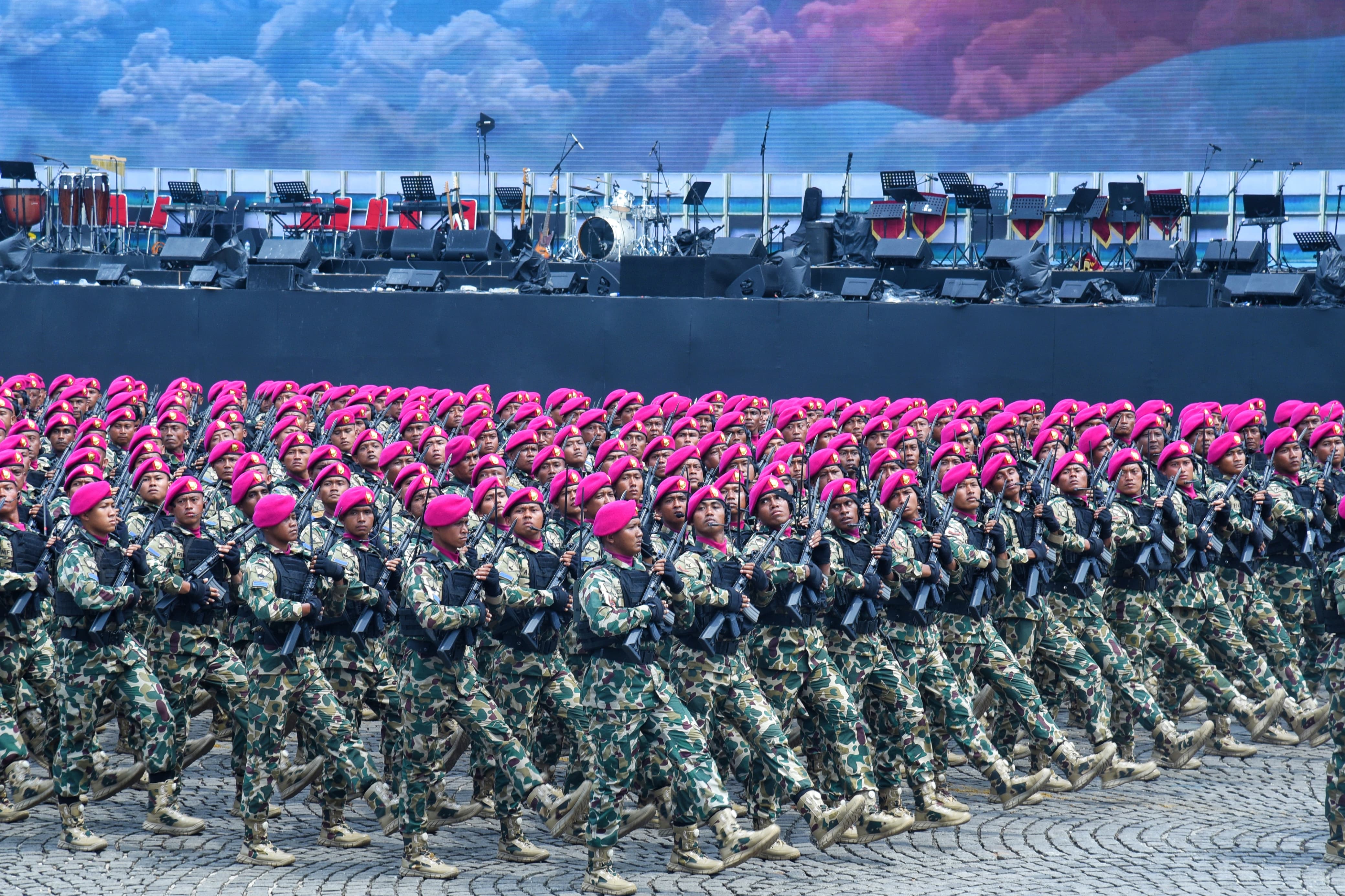 Dalam arahannya, Panglima TNI juga menekankan pentingnya disiplin dan sikap percaya diri. Ia meminta setiap prajurit, termasuk Korps Marinir, menjaga sikap terbaik di hadapan Presiden dan rakyat Indonesia pada puncak peringatan. âTatapannya tajam, perlihatkan kebanggaan kalian sebagai prajurit TNI,â tegasnya saat memeriksa barisan.