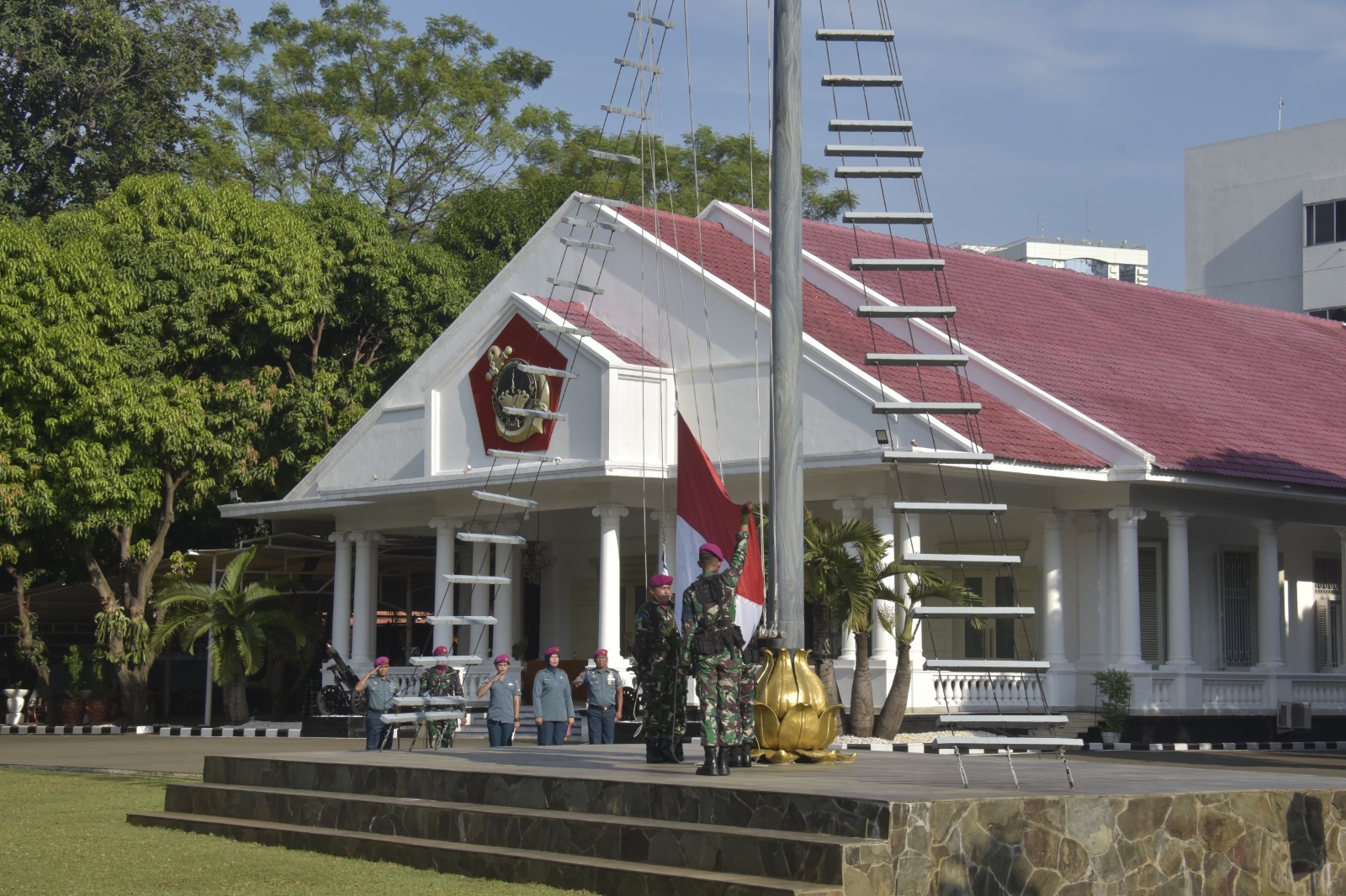 TNI AL.Dispen Kormar (Jakarta)- Kepala Keuangan Wilayah (Kakuwil) Kormar Kolonel Laut (S) Izudin Arifianto, S.A.P., memimpin Upacara Pengibaran Bendera Merah Putih yang diikuti segenap prajurit dan PNS Markas Komando Korps Marinir (Mako Kormar), bertempat di lapangan apel Mako Kormar, Jalan Prajurit KKO Usman dan Harun No. 40 Kwitang, Jakarta Pusat, Senin (29/04/2024).