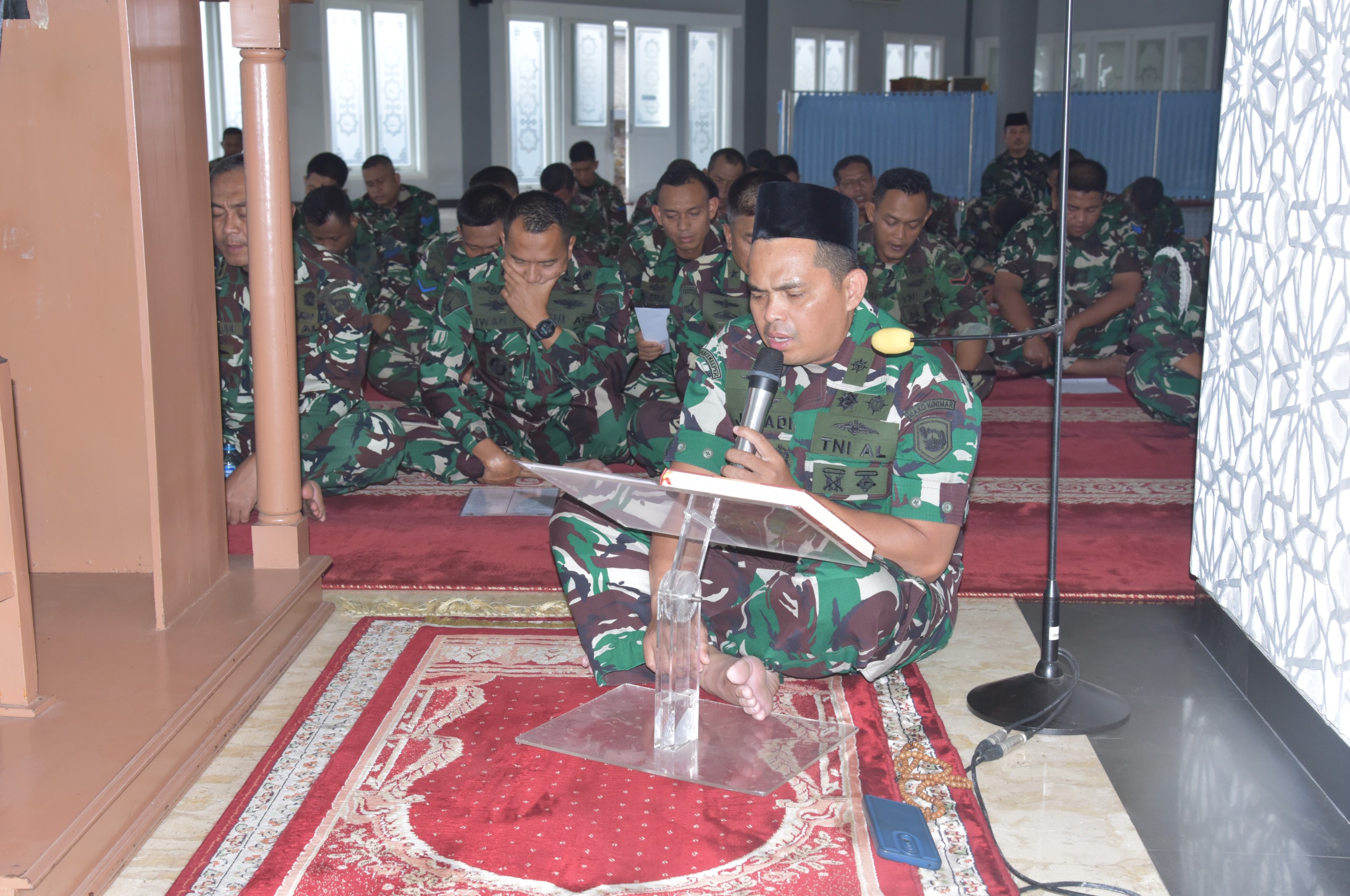 Dispen Kormar TNI Angkatan Laut (Jakarta). Kepala Staf Korps Marinir (Kas Kormar) Brigjen TNI (Mar) Muhammad Nadir, M.Tr.Opsla., memimpin kegiatan doa bersama yang diikuti oleh seluruh prajurit Korps Marinir di berbagai satuan dalam rangka menjaga keselamatan Prajurit Korps Marinir sebagai bentuk dukungan moril dan spiritual bagi para prajurit yang sedang melaksanakan tugas pengamanan unjuk rasa di berbagai wilayah, Kegiatan ini digelar di Mesjid At Taqwa Markas Komando Korps Marinir (Mako Kormar) Jalan Prajurit KKO Usman dan Harun No 40 Kwitang Jakarta Pusat. Minggu (31/08/2025)