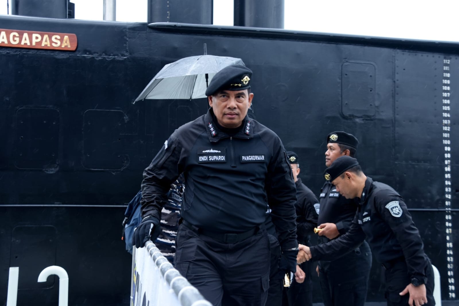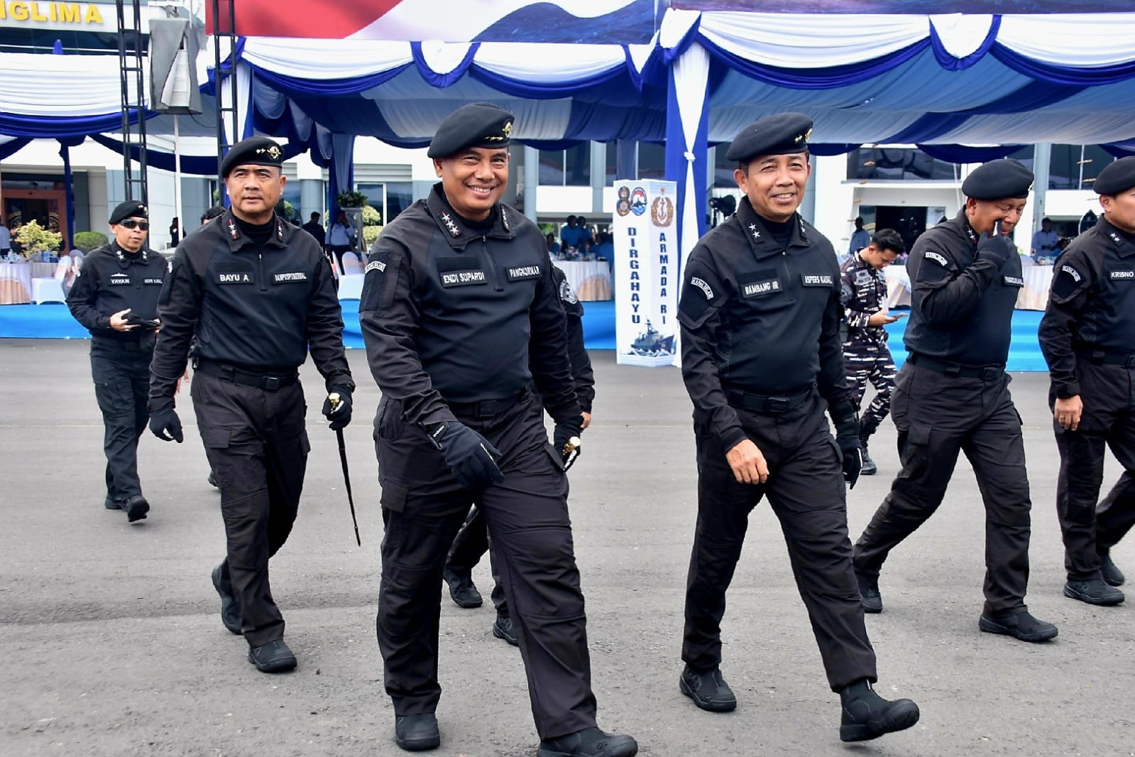 Dispen Kormar TNI Angkatan Laut (Surabaya). Panglima Korps Marinir (Pangkormar) Letnan Jenderal TNI (Mar) Dr. Endi Supardi, S.E., M.M., M.Tr.Opsla., CHRMP., CRMP., menerima Brevet Kehormatan Hiu Kencana yang disematkan langsung oleh Kepala Staf Angkatan Laut (Kasal) Laksamana TNI Dr. Muhammad Ali, S.E., M.M., M.Tr.Opsla. Penyematan berlangsung di dalam KRI Nagapasa-403 yang bersandar di Dermaga Madura, Koarmada II, Surabaya, Kamis (04/12/2025).