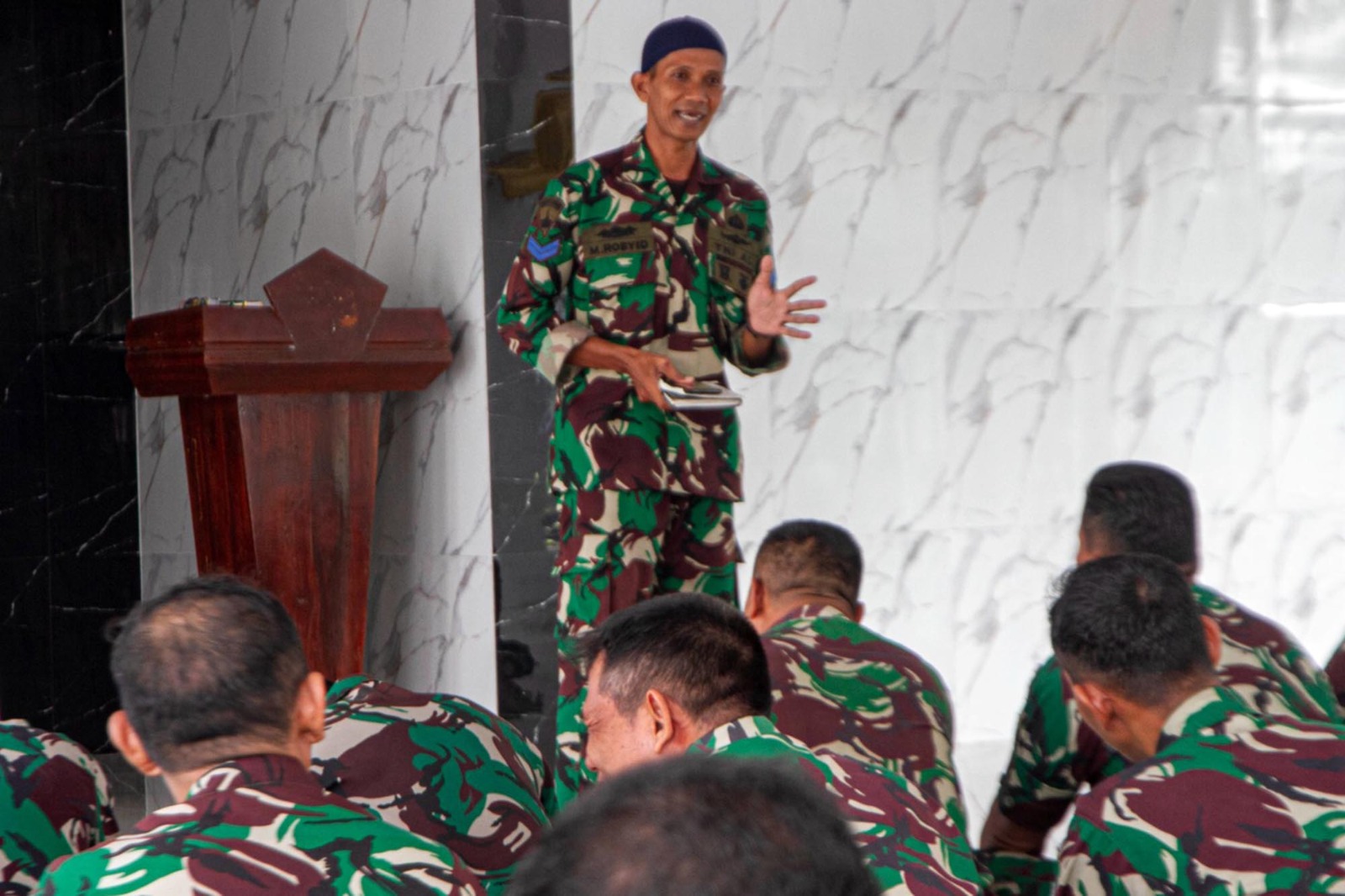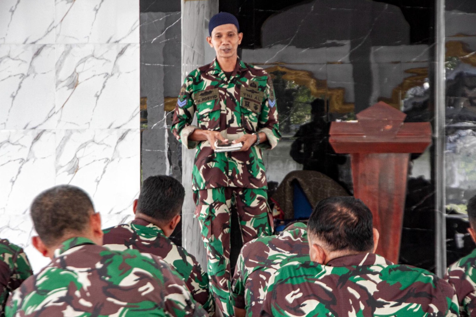 TNI AL, Dispen Kormar (Sidoarjo) Dalam rangka meningkatkan keimanan dan ketaqwaan kepada Tuhan Yang Maha Esa, prajurit Batalyon Infanteri 3 Marinir mengikuti kauseri agama di Masjid Al – Aziz Yonif 3 Marinir Gedangan, Sidoarjo, Jawa Timur. Senin (13/05/2024).