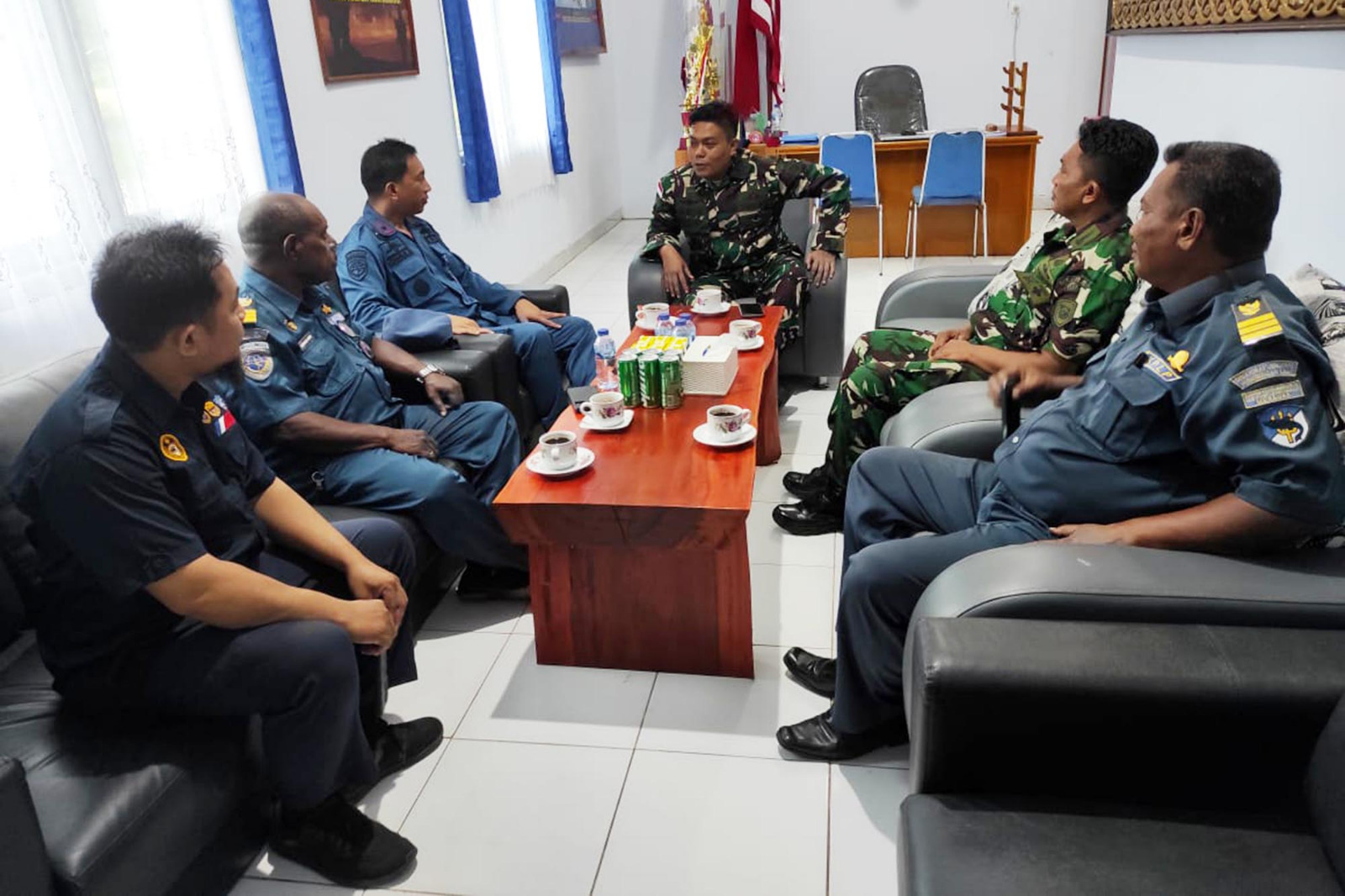 TNI AL, Dispen Kormar (Merauke). Komandan Batalyon Marinir Pertahanan Pangkalan (Yonmarhanlan) Xl Merauke Mayor Marinir Deni Kusmana menerima kunjungan Kepala Kantor Kesyahbandaran Otoritas Pelabuhan (KSOP) kelas lV Merauke di Mako Yonmarhanlan XI Merauke Jl. Diko Trans Papua Kabupaten Merauke, Papua Selatan. Rabu (24/04/2024).