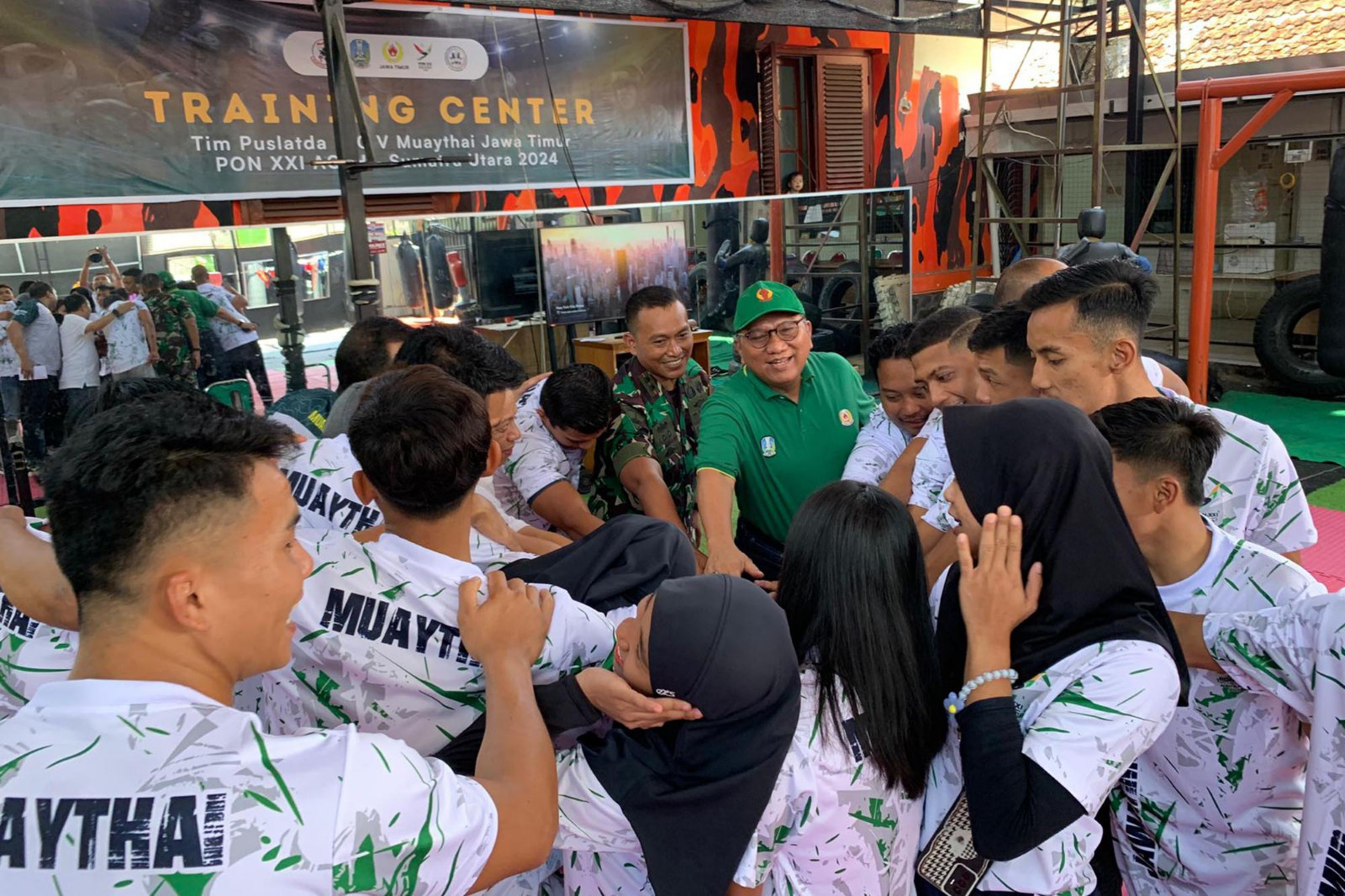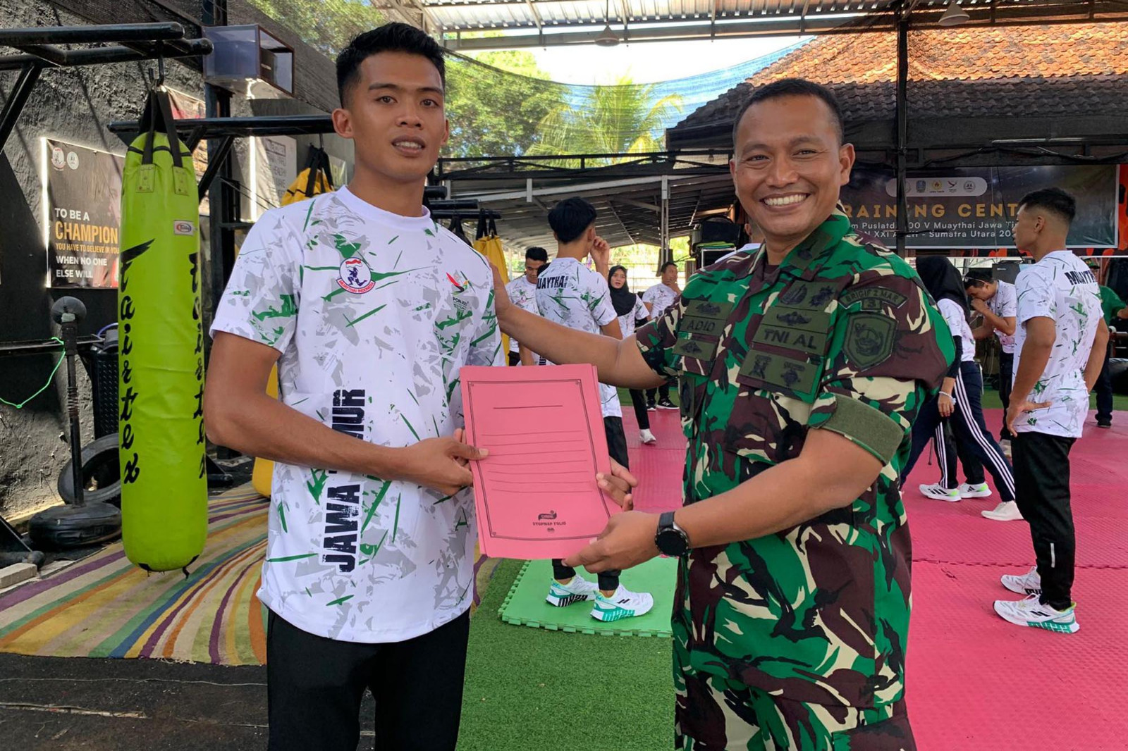 TNI AL, Dispen Kormar (Surabaya) Komandan Batalyon Infanteri 3 Marinir Letkol Marinir Adid Kurniawan Wicaksono, M.Tr.Opsla melepas serta memberikan semangat dan motivasi kepada atlet muaythai yang akan mengikuti tryout ke Bangkok, Thailand di Garuda Java Training Champ Surabaya, Jawa Timur. Selasa (25/06/2024).