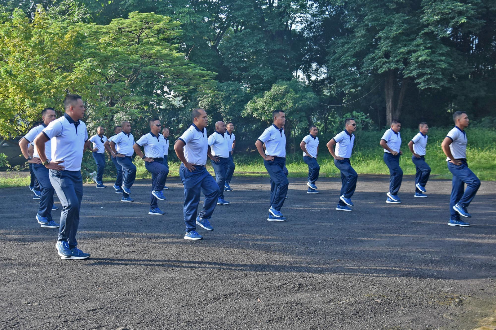 Kegiatan olahraga bersama kali ini diawali dengan melaksanakan peregangan, Senam Kesegaran Jasmani (SKJ) 88 dan diakhiri dengan menembak pistol.