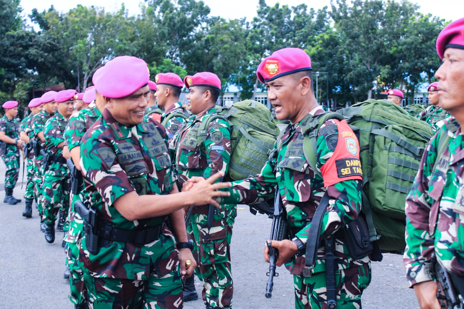TNI Angkatan Laut, Dispen Kormar (Sidoarjo). Dalam rangka purna tugas menjaga kedaulatan wilayah ambang batas laut Indonesia, Komandan Batalyon Tank Amfibi 2 Marinir Letnan Kolonel Marinir Alfredo Yowel Antaribaba, M.Tr.Opsla., menghadiri upacara penyambutan prajurit Yontankfib 2 Mar yang tergabung dalam Satgasmar Pam Ambalat XXIX TA 2023 di Lapangan Apel Brigif 2 Mar, Kesatrian Marinir R. Suhadi, Gedangan, Sidoarjo. Kamis (04/07/2024).
