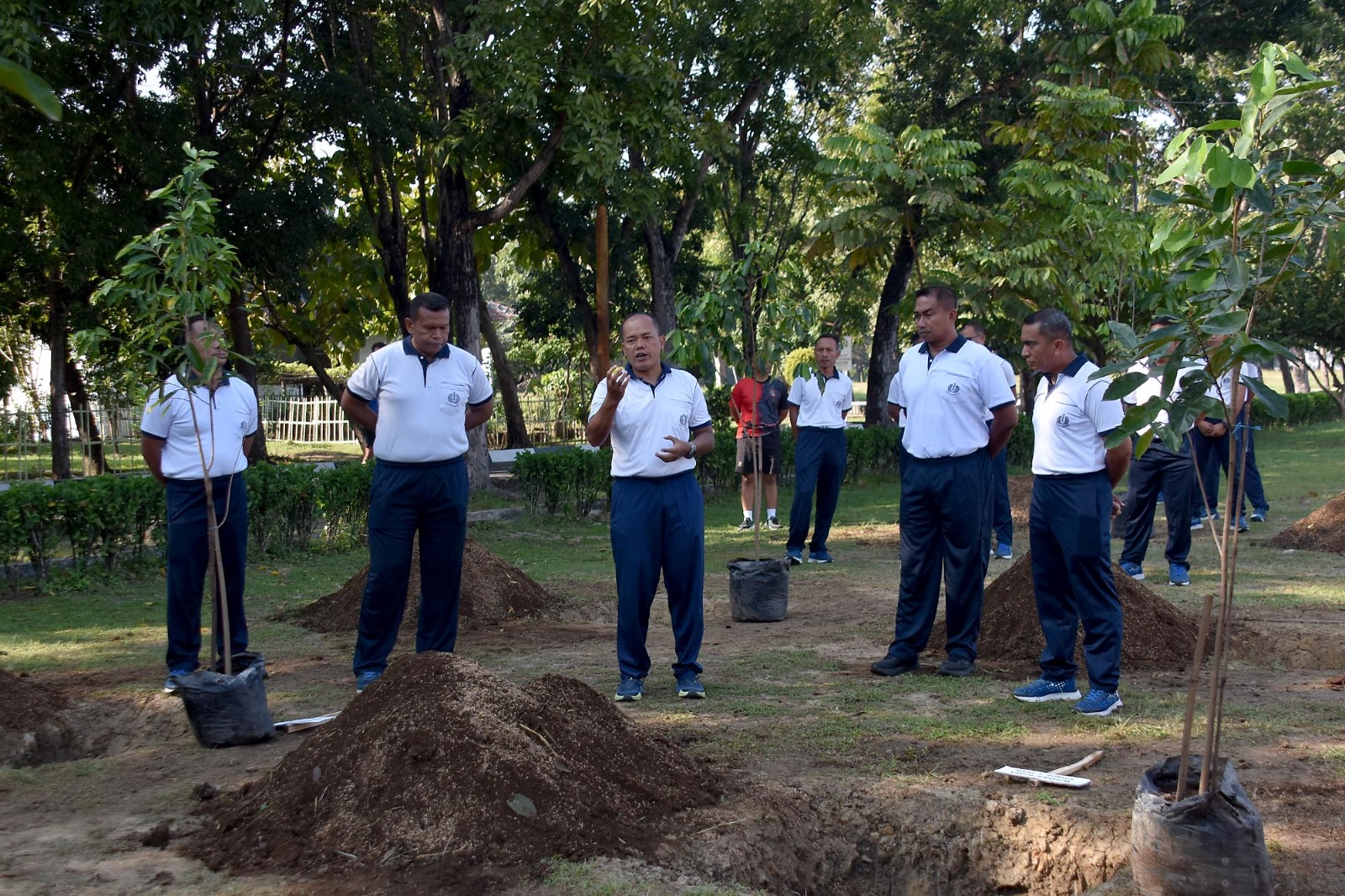 TNI AL, Dispen Kormar (Sidoarjo). Dalam rangka mendukung program ketahanan pangan dan penghijauan, Komandan Brigade Infanteri 2 Marinir Kolonel Marinir Arip Supriyadi, S.H., M.M., M.Tr.Hanla, melaksanakan penanaman bibit pohon buah Sirsak di Kesatrian Marinir R. Suhadi Gedangan, Sidoarjo, Jawa Timur. Jumat (21/06/2024).