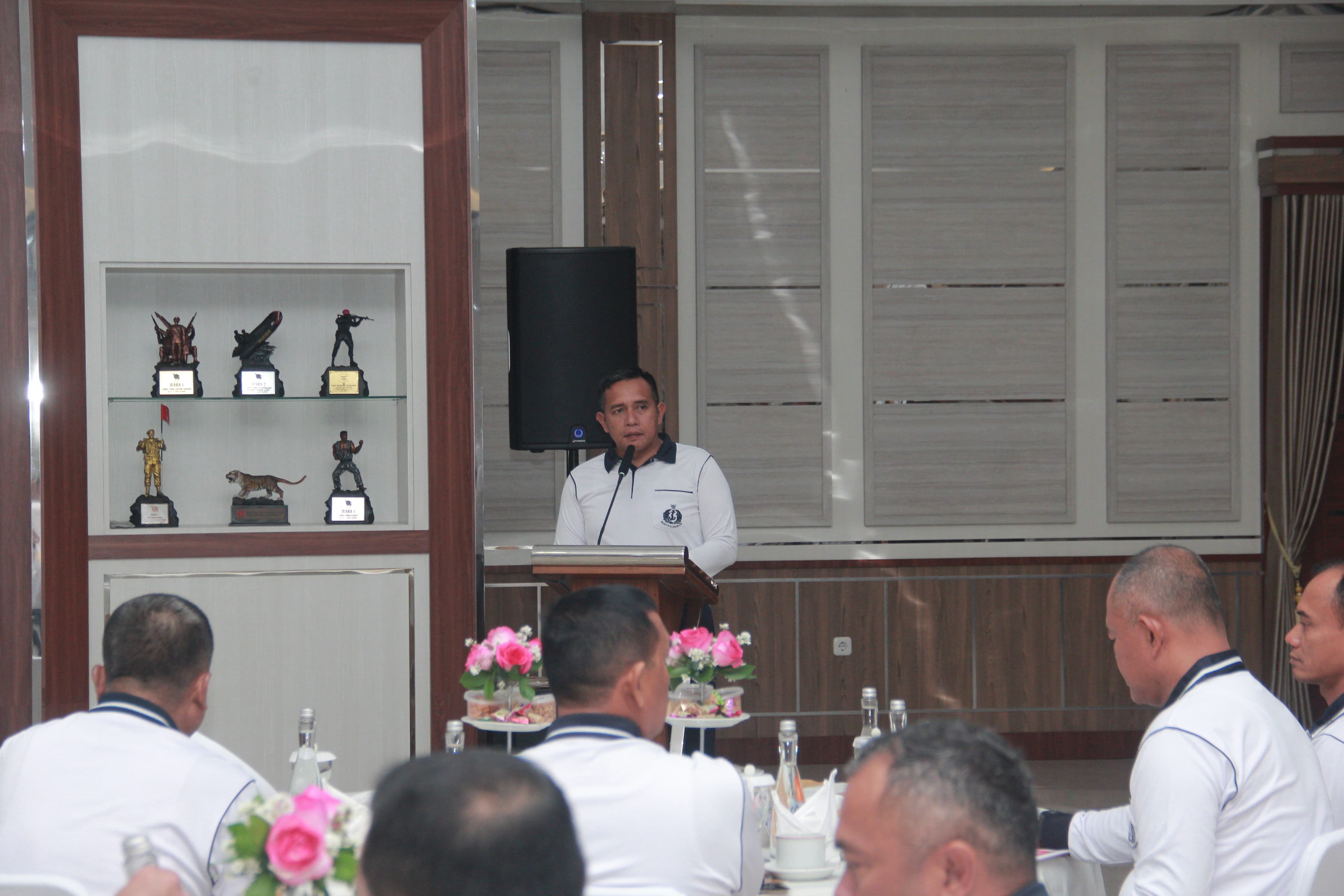 Dalam paparannya selaku Ketua pelaksana pembangunan sarana dan prasarana UMKM Primkopal Lanmar Jakarta, Komandan Lanmar Jakarta menyampaikan proses berdiri dan terlaksananya UMKM Primkopal Lanmar Jakarta.