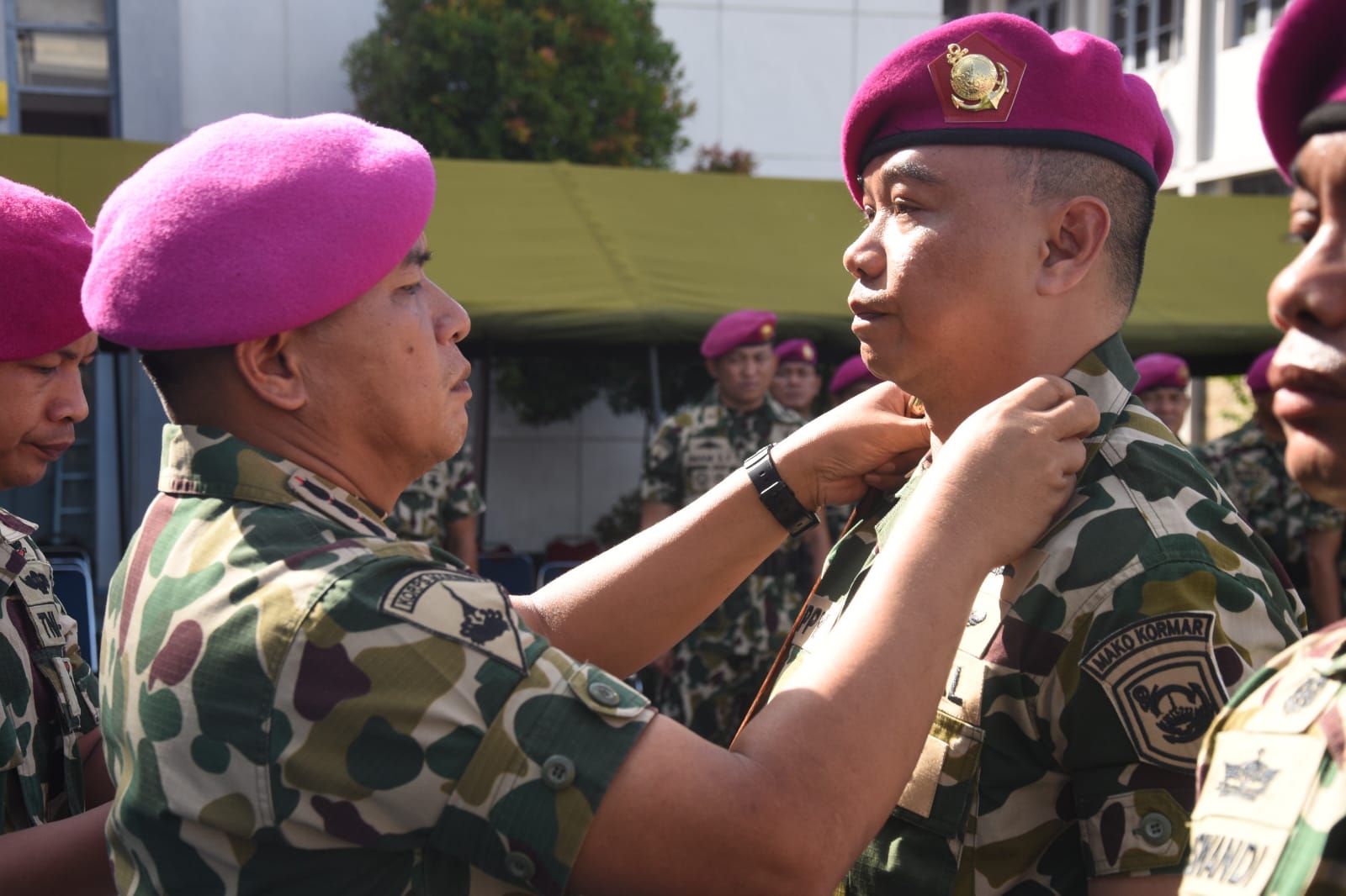 TNI Angkatan Laut. Dispen Kormar. Komandan Pangkalan Korps Marinir Jakarta (Danlanmar Jakarta) Kolonel Marinir Dian Suryansyah, S.E., M.Tr.Hanla., M.M. secara resmi memimpin Serah Terima Jabatan (Sertijab) Enam Jabatan Strategis di lingkungan Lanmar Jakarta yakni Penyerahan jabatan Wakil Komandan Lanmar Jakarta (Wadan Lanmar Jakarta), Perwira Staf Operasi Lanmar Jakarta (Pasops Lanmar Jakarta), Kepala Akuntansi Lanmar Jakarta (Ka Akun Lanmar Jakarta), Komandan Detasemen Pekerjaan Umum Lanmar Jakarta (Dandenpum Lanmar Jakarta), Komandan Detasemen Pemeliharaan Lanmar Jakarta (Dandenhar Lanmar Jakarta), serta penyerahan Jabatan Komandan Detasemen Musik Lanmar Jakarta (Dandensik Lanmar Jakarta) kepada Komandan Lanmar Jakarta bertempat di Lapangan Apel Lanmar Jakarta, Kesatrian Marinir Zainal Abidin, Jl. Kwini II no. 6 Jakarta Pusat, Senin (14 April 2025).