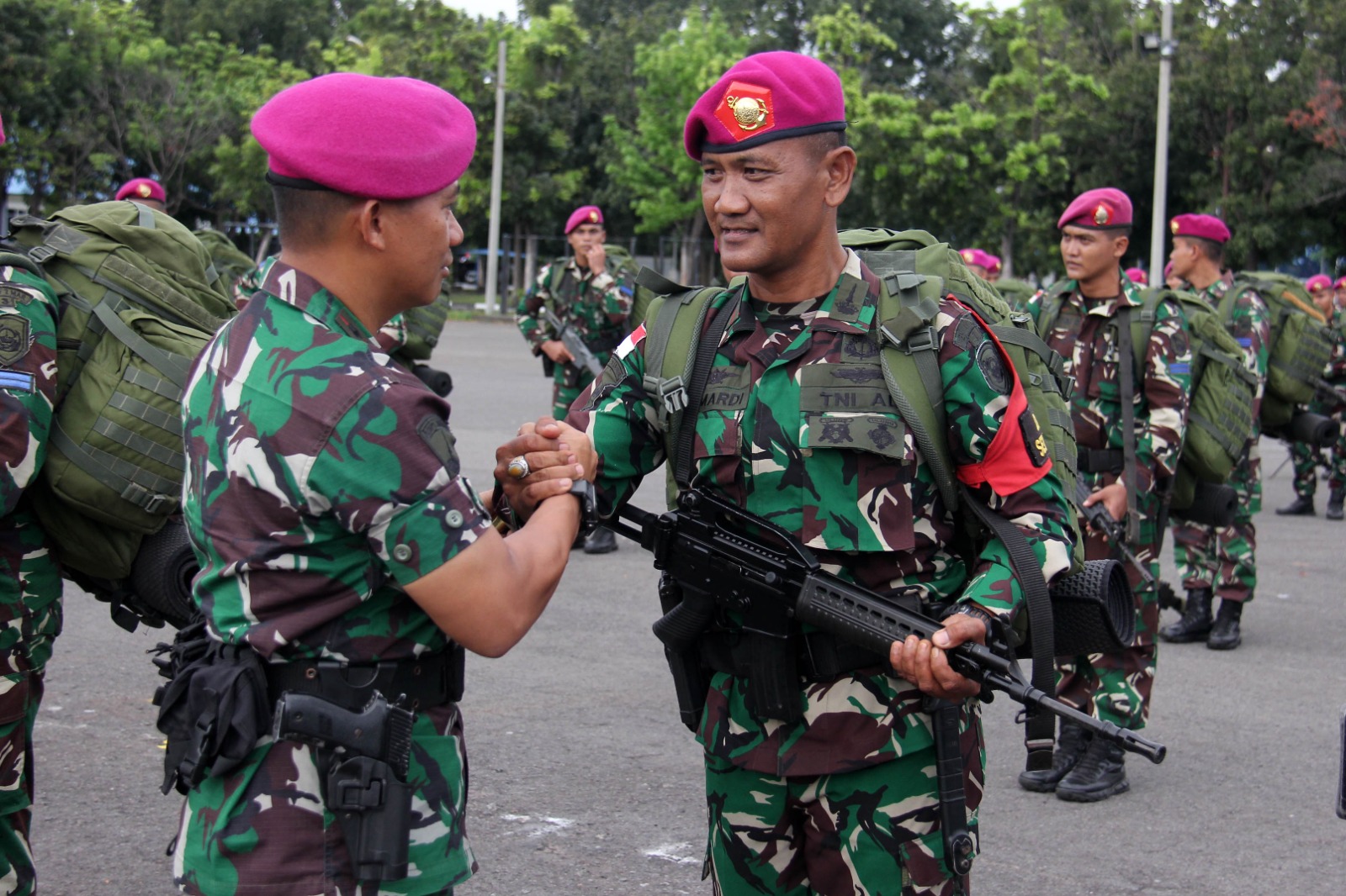 TNI Angkatan Laut, Dispen Kormar (Sidoarjo). Dalam rangka selesai menjaga pengamanan wilayah NKRI. Komandan Resimen Kavaleri 2 Marinir Letkol La Ode Jimmy Herizal Rahman, M.Tr.Hanla., M.M. menghadiri penyambutan kedatangan prajuritnya yang tergabung dalam Satuan Tugas Marinir Pengamanan (Satgasmar Pam) Ambalat XXIX tahun 2023 di Lapangan apel Brigif 2 Marinir, Kesatrian Marinir R. Suhadi Gedangan, Sidoarjo, Kamis (4/7/2024).