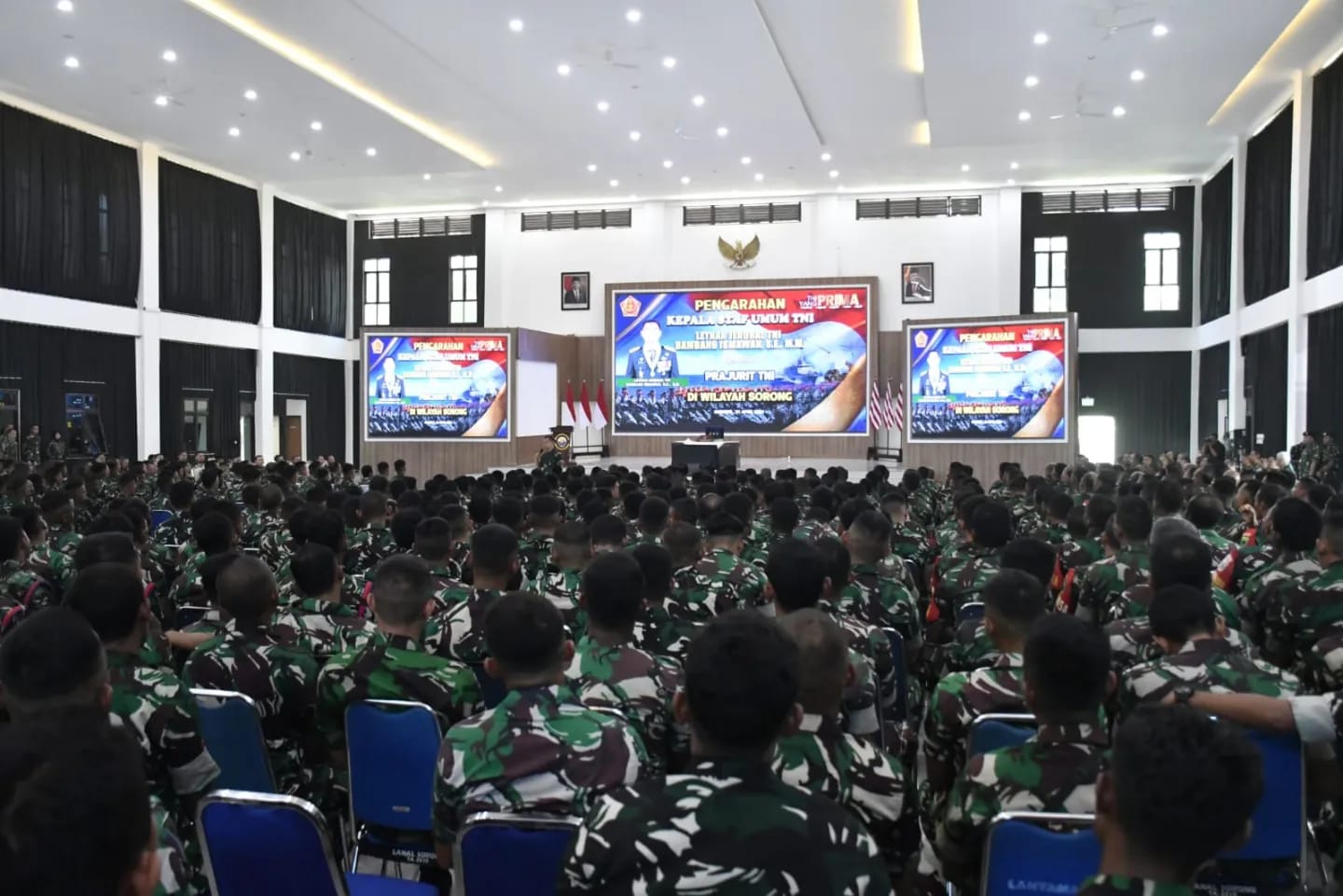 TNI AL, Dispen Kormar (Sorong). Komandan Pasmar 3 Brigjen TNI (Mar) Sugianto, S.Sos., M.M., mengikuti pengarahan Kepala Staf Umum TNI Letjen TNI Bambang Ismawan, S.E., M.M., dalam rangka Kunjungan Kerja Kasum TNI di wilayah Sorong bertempat di Gedung Serba Guna (GSG) Mas Pardi Mako Koarmada III, Distrik Salawati, Kabupaten Sorong, Papua Barat Daya. Minggu (21/04/2024).