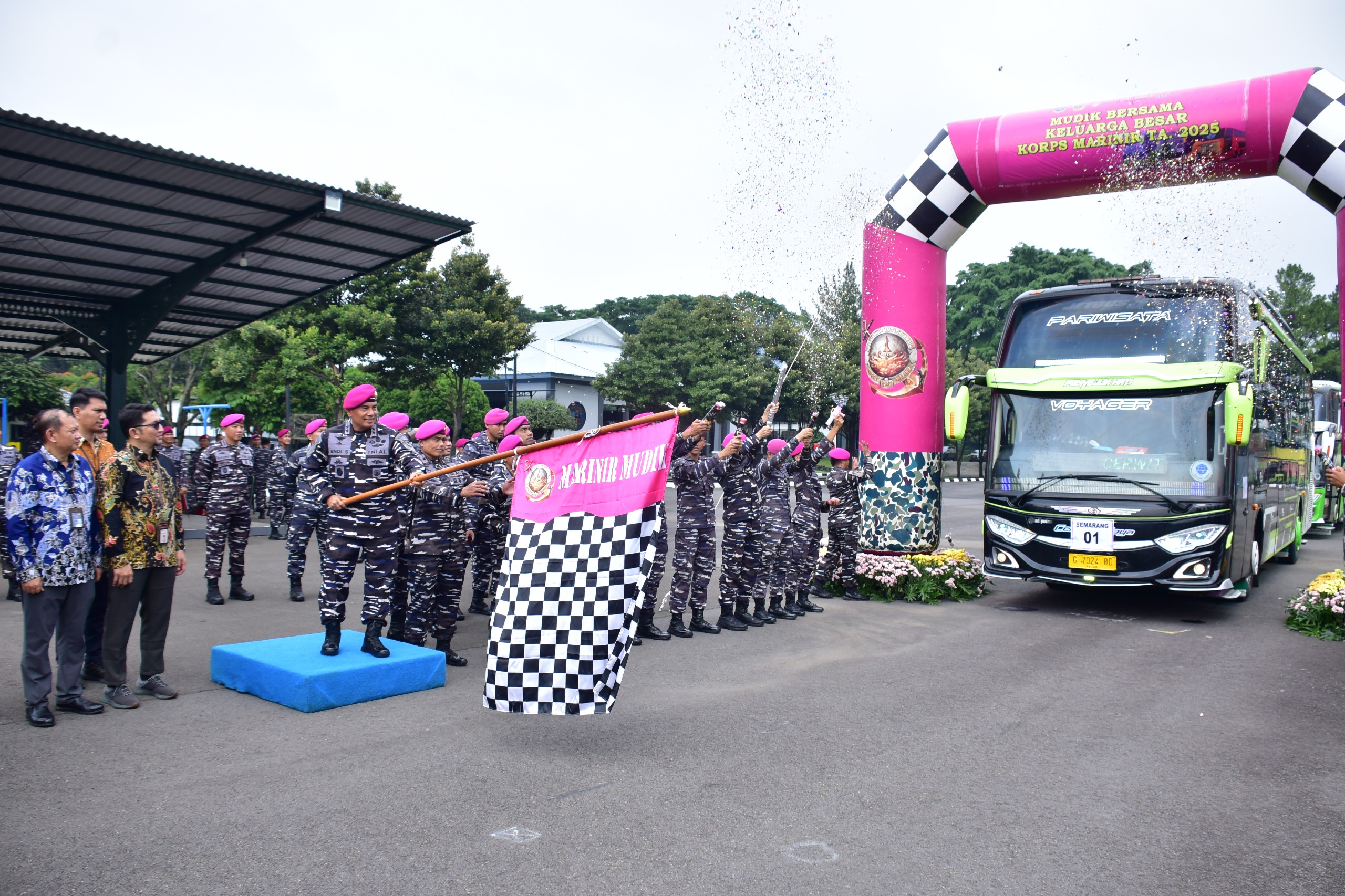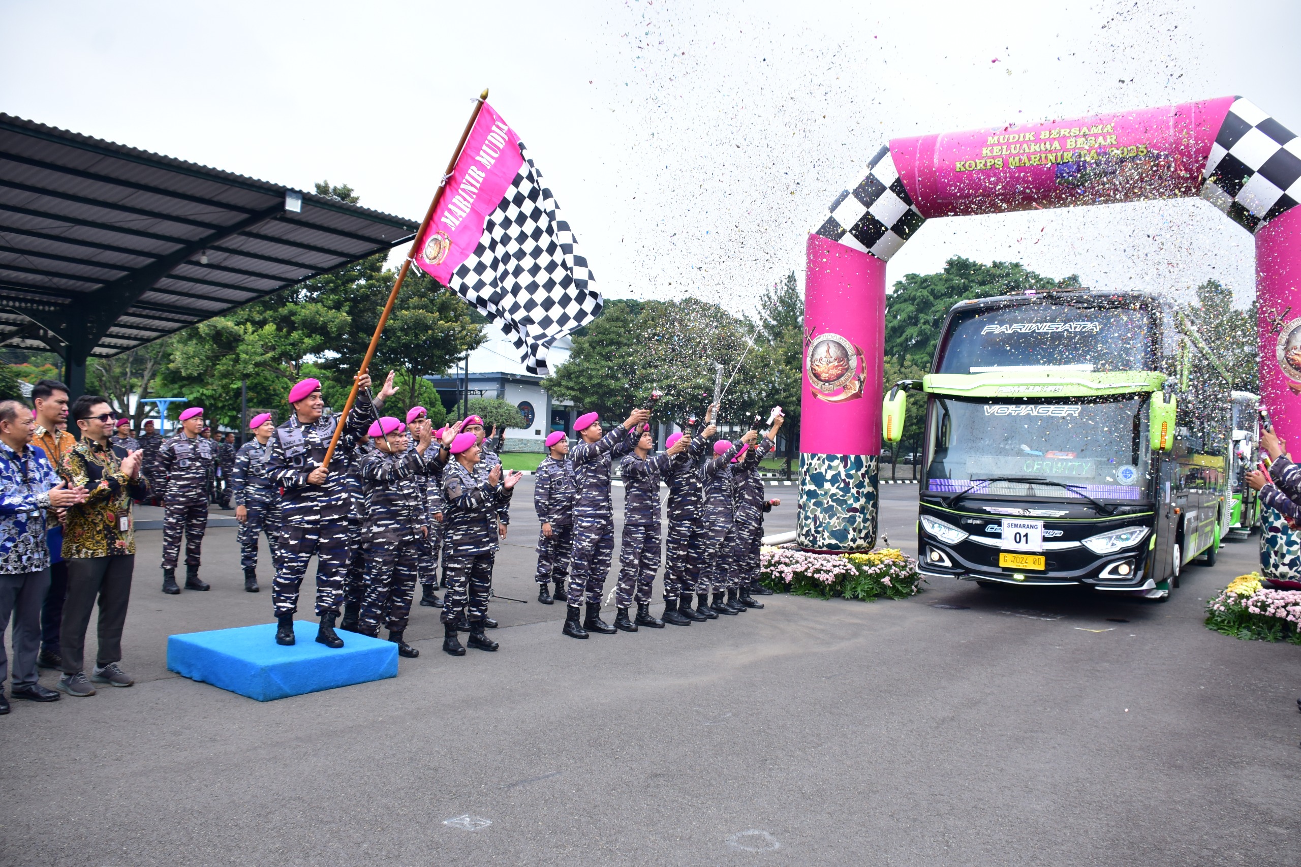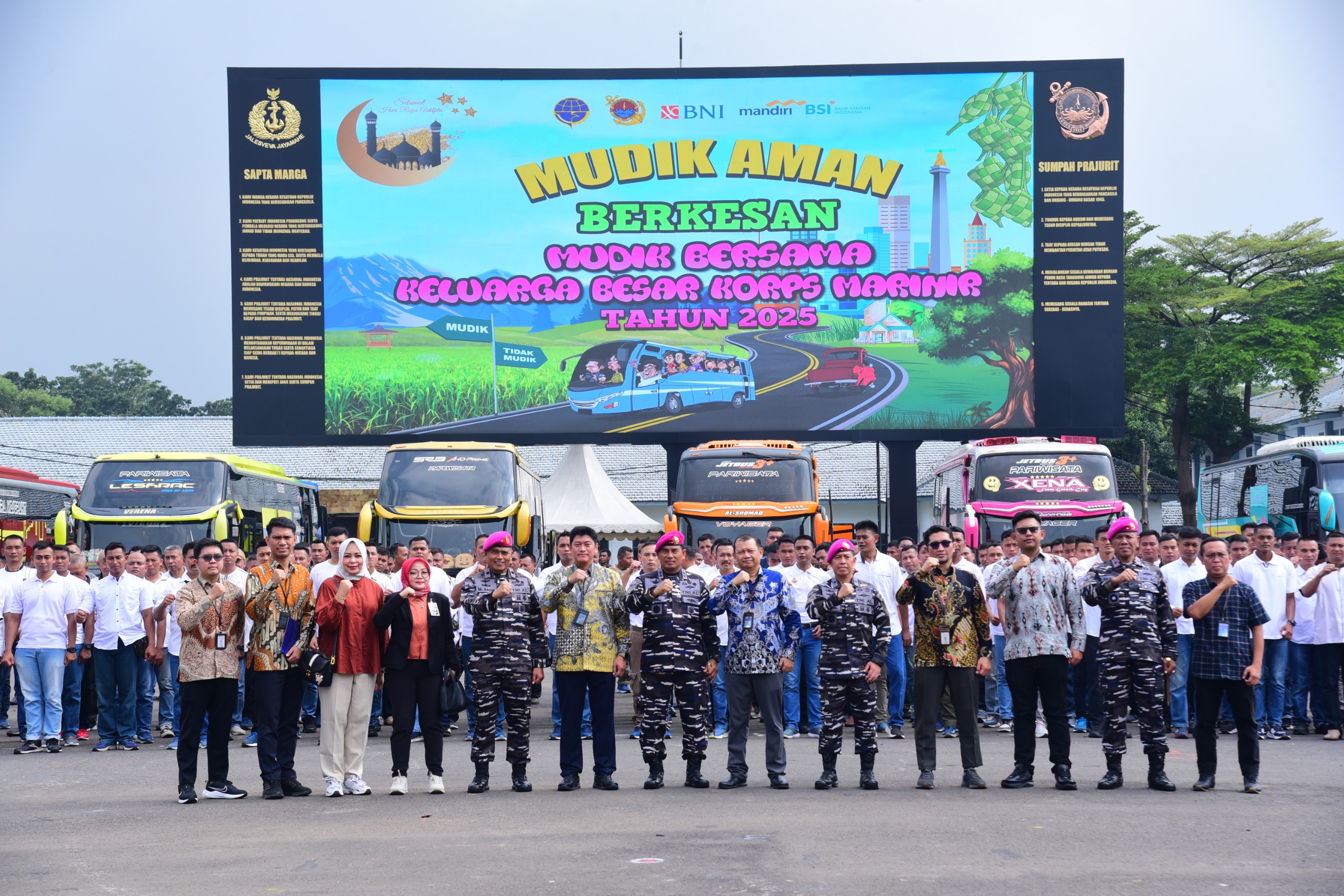 Jenderal berpangkat bintang dua tersebut juga berpesan agar seluruh peserta mudik senantiasa mengutamakan keselamatan selama perjalanan. Mayor Jenderal TNI (Mar) Dr. Endi Supardi, S.E., M.M., M.Tr.Opsla., CHRMP., CRMP mengingatkan agar kondisi kendaraan diperhatikan, disiplin dalam berlalu lintas, serta menjaga kesehatan selama di perjalanan. Ucapan terima kasih turut disampaikan kepada seluruh pihak yang telah mendukung, termasuk Dirjen Perhubungan Darat Kemenhub, Bank BNI, Bank Mandiri, Bank BSI serta panitia dan petugas pengamanan yang telah bekerja keras demi kelancaran kegiatan ini.