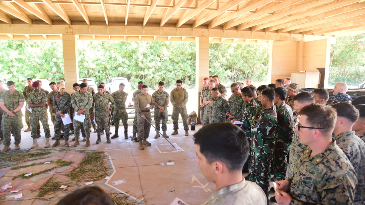 Dispen Kormar TNI Angkatan Laut (Hawaii). Memasuki puncak Latma Multilateral Rim of The Pacific (Rimpac) 2024, Korps Marinir TNI Angkatan Laut laksanakan Tactical Floor Game (TFG) bertempat di Marine Corps Training Area Bellows (MCTAB) Waimanalo, Hawaii Amerika Serikat, Selasa (23/07/2024)
