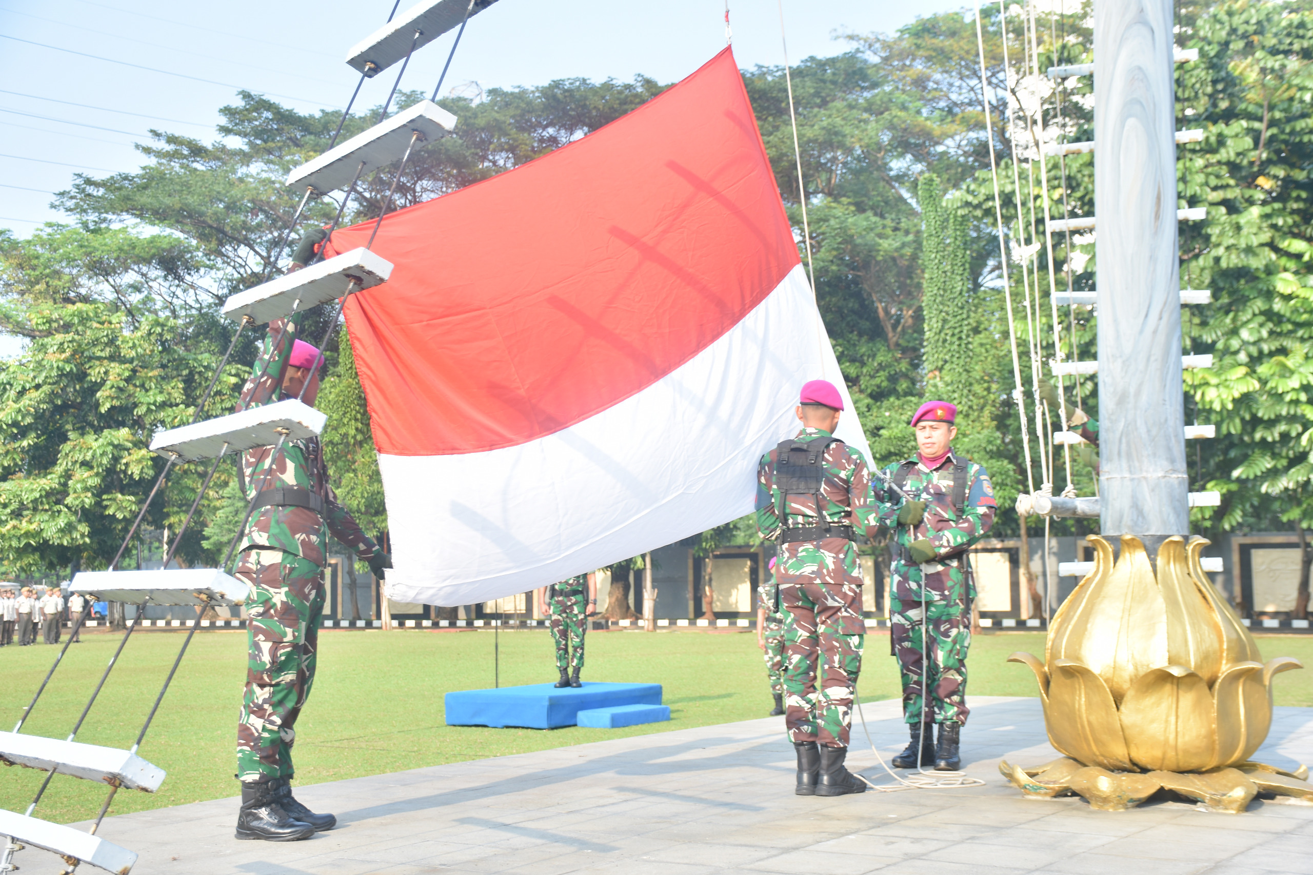 Langkah Tegap Prajurit Marinir Iringi Upacara Penaikan Bendera Merah Putih