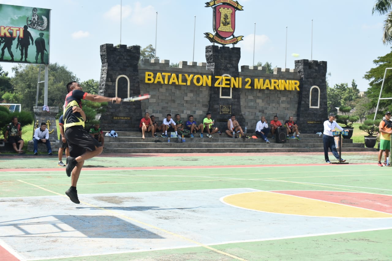 ar, S. Hub., Int., CACA., CRMP., selaku Komandan Batalyon Zeni 2 Marinir (Danyon Zeni 2 Mar) menyampaikan kegiatan Tenis Lapangan ini merupakan rangkaian dari beberapa pertandingan dalam rangka memeriahkan HUT Batalyon Zeni 2 Marinir Ke-63 tahun serta mengucapkan terima kasih kepada seluruh Prajurit Yonzeni 2 Mar yang berpartisipasi dan memeriahkan dalam perlombaan, semoga prestasi ini menjadi bekal untuk menjadi juara pada perlombaan berikutnya, sehingga membawa kebanggaan dan mengharumkan nama baik Satuan.